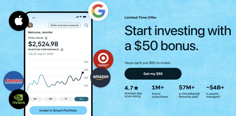 - 支持公民/绿卡/部分visa持有者开户,其中支持F1学生身份开户。投资账户需要报税。存入spending 或者invest 账户至少5刀,可以获得$5的Stash自己的奖励。