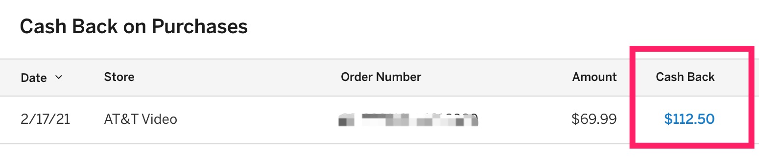 在 Rakuten 主页,搜索 “AT&T Video” 进入下图所示的商家页面,可以看到返现金额为 $112.5: