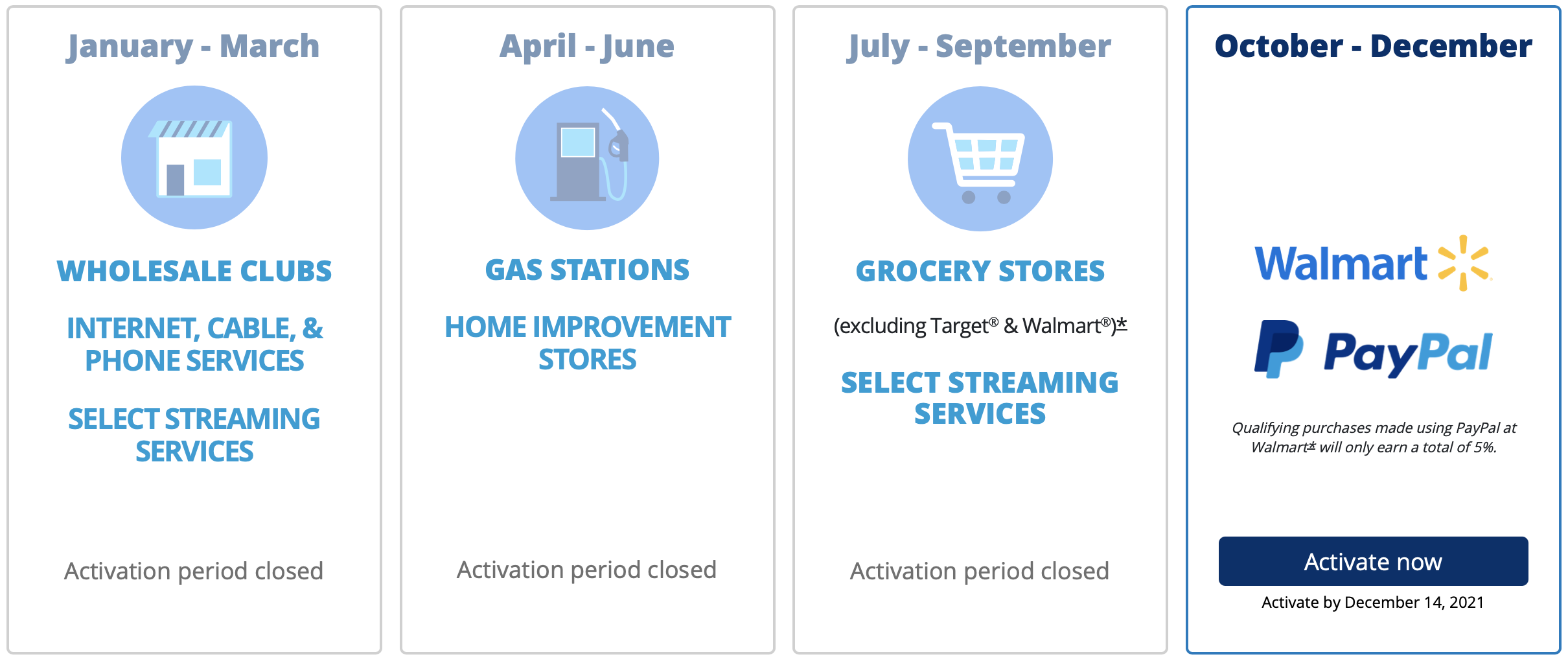2021年Q4 (10~12月) 马上就要来了,各卡的类别都已经放出了,大家别忘了激活5%返现。