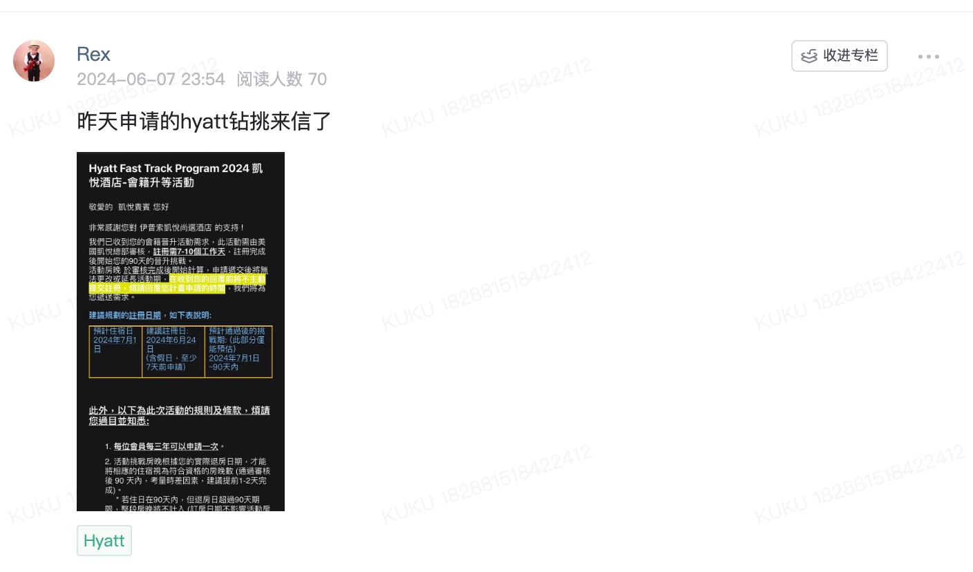 Hyatt之前还推出过New Brand入住奖励(新加盟的Brand)、及New app使用奖励,目前暂时没有了,预计以后还有。