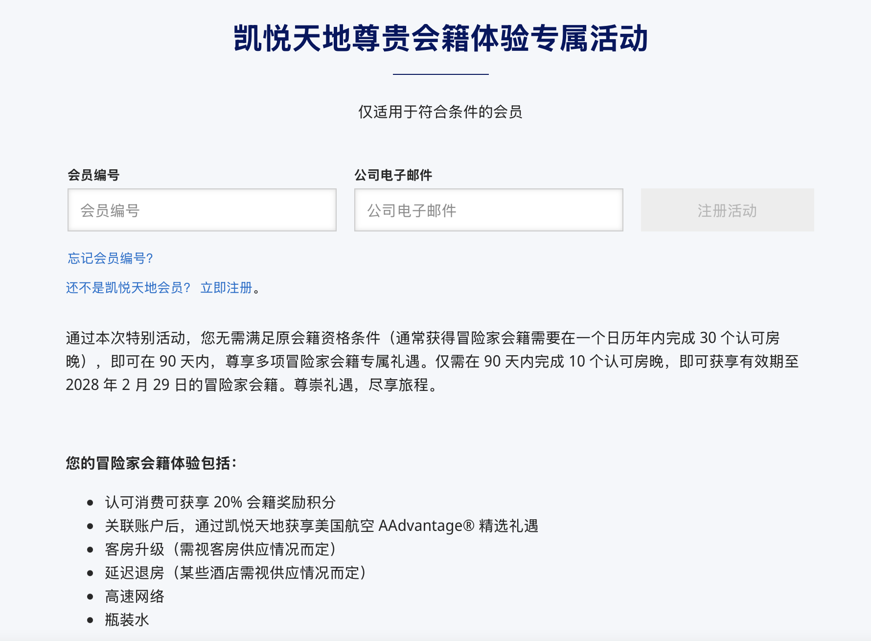 - 挑战:注册后可以获得90天的冒险家会籍;90天内10晚冒险家,20晚环球客(有效期至2026年2月)