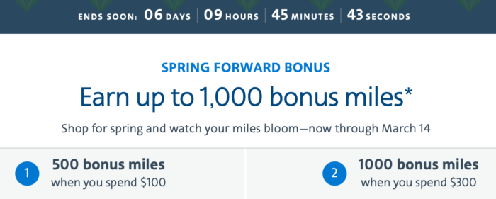 • 消费满 $100,送 500 里程;或者消费满 $300,送 1000 里程。