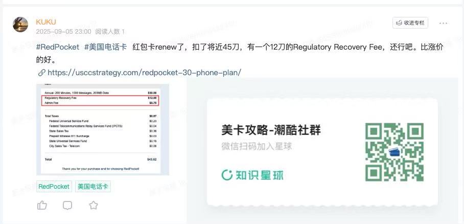 【2025.9更新】老用户renew的时候依然是30刀卡,但是需要支付12刀的Regulatory Recovery Fee,算上其他杂费,差不多近45刀
