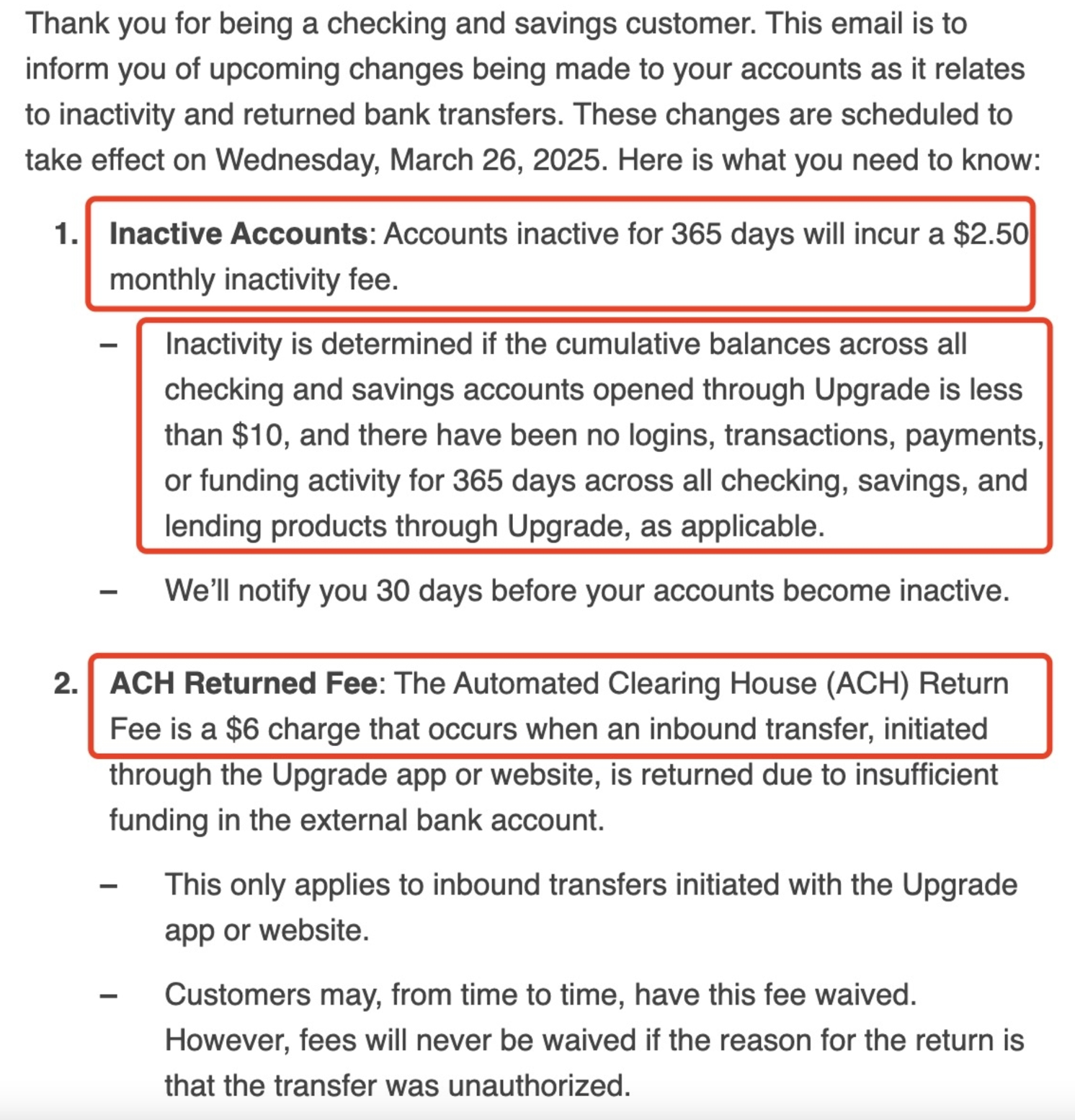 【2025.12更新】Upgrade 支票账户有几个重要负面更新(2026年1月19日开始):