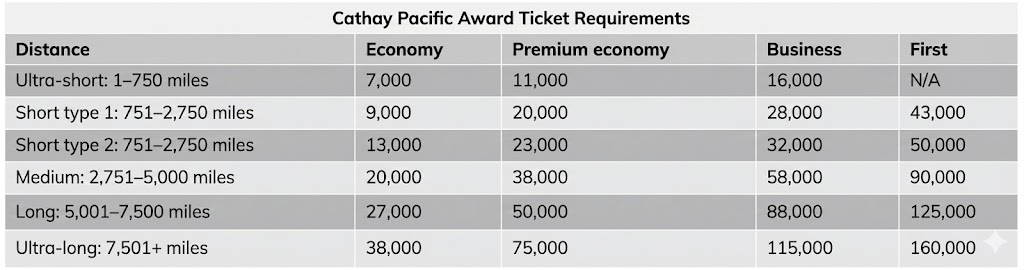 除了長榮航空與中華航空之外,國泰航空也是一個我們讀者會考慮搭乘,往返亞洲與北美洲之間的航空公司。而目前國泰航空基本上只會保留自家航班的頭等艙/商務艙哩程機位,給予自家哩程計畫的會員兌換,因此若想要搭乘國泰航空商務艙/頭等艙的朋友,持有自家計畫「Cathay」的哩程是不可或缺的!以下為目前國泰航空自家航班的哩程兌換標準表格: