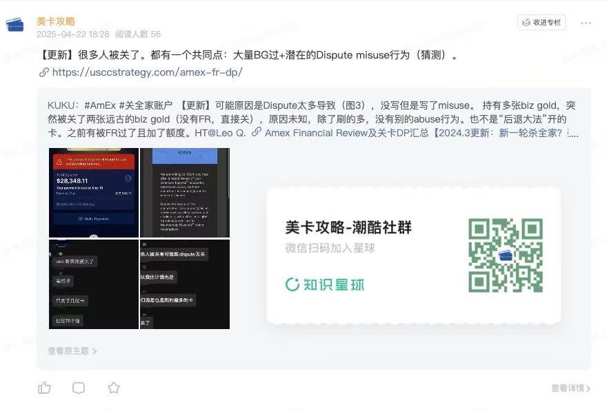 【2025.4更新】这两天,大量Amex账户被关闭,多数为Charge卡尤其是商业Charge卡,并且关闭账户不一定是关全家账户,可能只是个别卡被关,HT:Leo. Q。目前大家推测的原因(比较肯定的是,或多或少跟BG有关):
