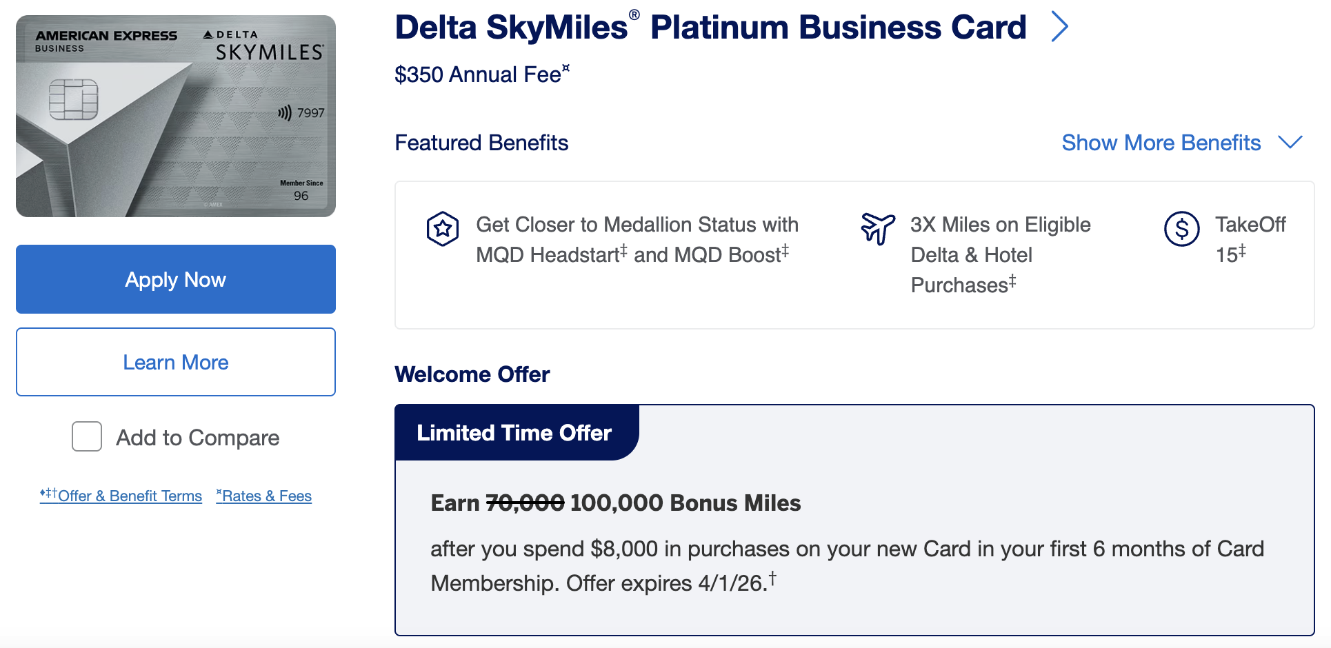 - 开卡奖励从60K增加到100K,需要6个月内消费$8000,3月27日截止