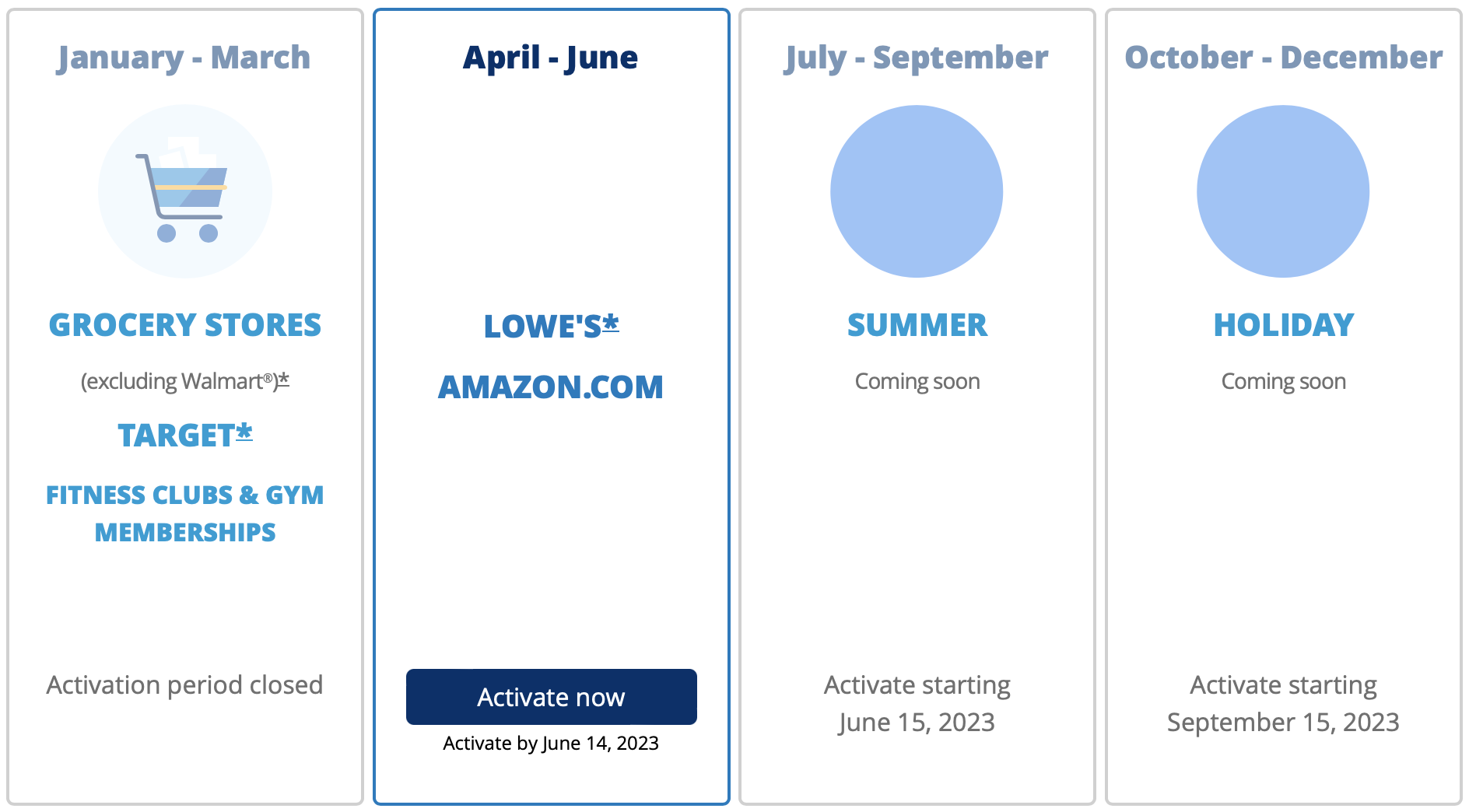 【2023.3 更新】2023年Q2 (4~6月) 马上就要来了,各卡的类别都已经放出了,大家别忘了激活5%返现。