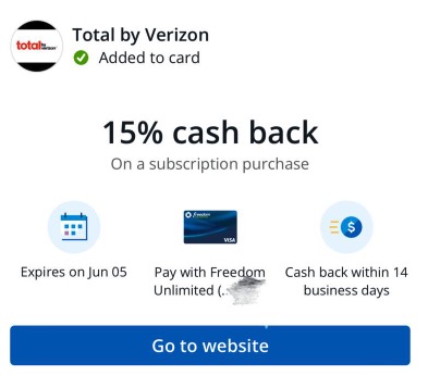 在TopCashBack检索Total by Verizon,之后点击进入Total by Verizon官网。