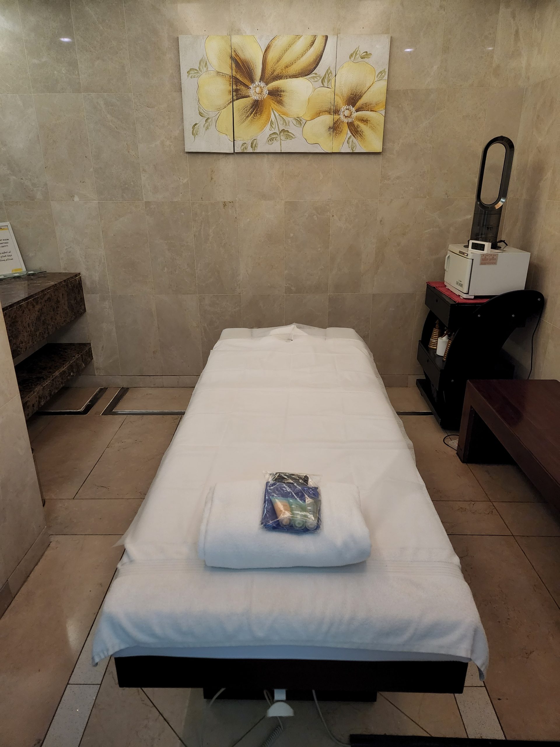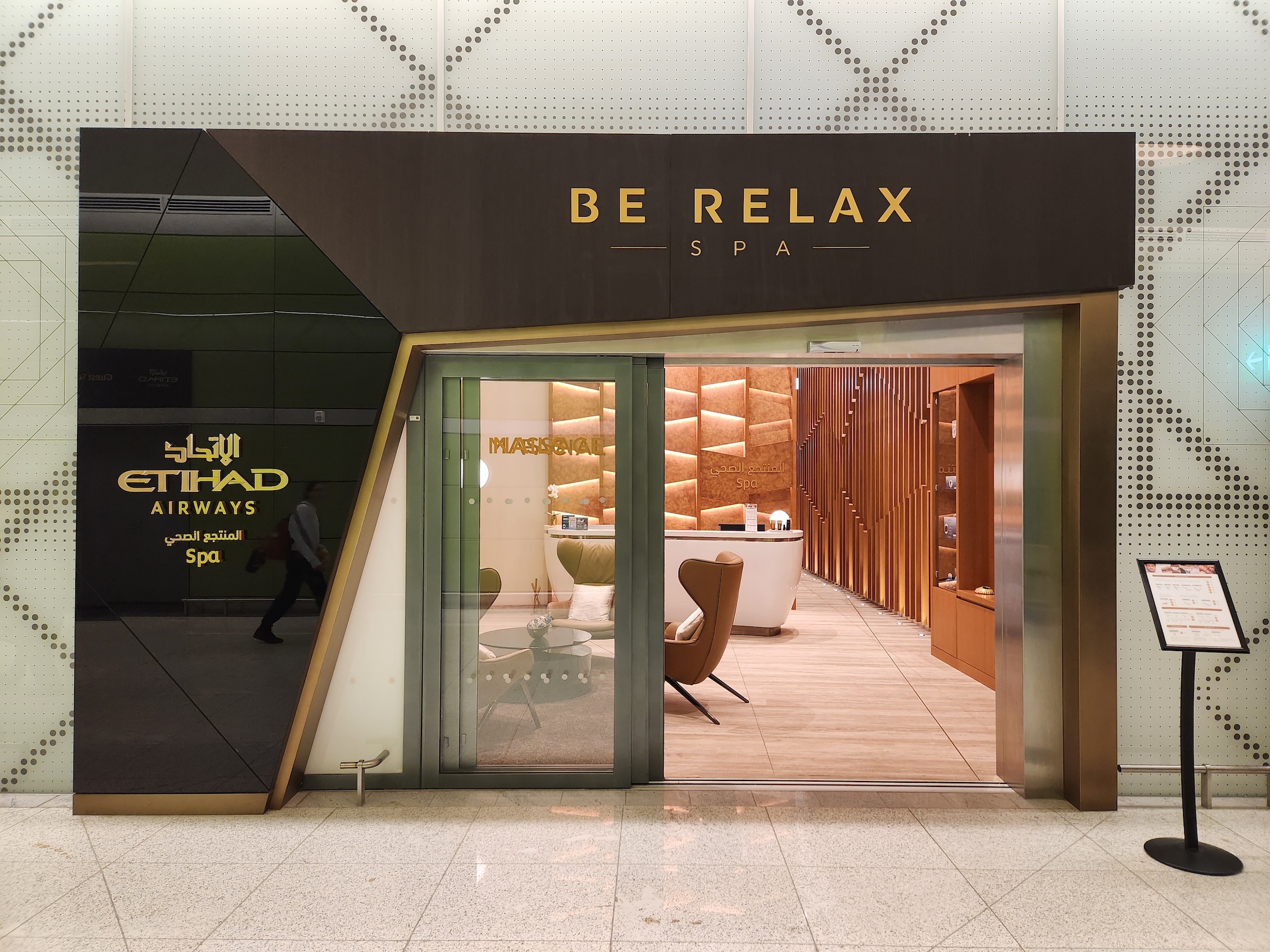 阿提哈德航空的按摩/芳療相關服務空間,就位於頭等艙/商務艙貴賓室的旁邊,雖然任何人都可以付費獲得按摩服務,但只有搭乘特定艙等的乘客,才能享受免費的服務。若搭乘「The Residence」艙等的乘客,可獲得30分鐘的臉部保養,或是「兩次」15分鐘的按摩服務。若是搭乘頭等艙的乘客,或是持有阿提哈德航空白金會籍 (Platinum) 的乘客,可獲得15分鐘的按摩/芳療服務。根據我自身的經驗(點我),通常向服務人員要求之後,都可以很快的獲得服務,有機會搭乘頭等艙的朋友,千萬不要錯過!