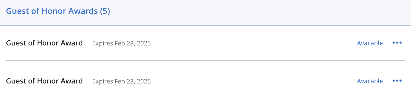对于以上符合条件的会员,Hyatt 已经在账户中直接发了5张有效期至2025年2月28日的 GoH Award 券。过期日期前会员自行决定如何使用(使用条款和内容就是上一小节)。