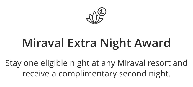 | 100晚 | 1-7级房券 | 10k 奖励积分, | 1张套房券, | Miraval买一送一券 |