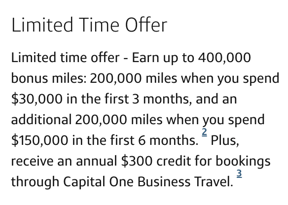 【2025.11更新】开卡奖励增加到400K,3个月消费3万美元奖励200K积分,6个月内累计消费15万美元,再奖励200K积分,消费要求很高,各位量力而行