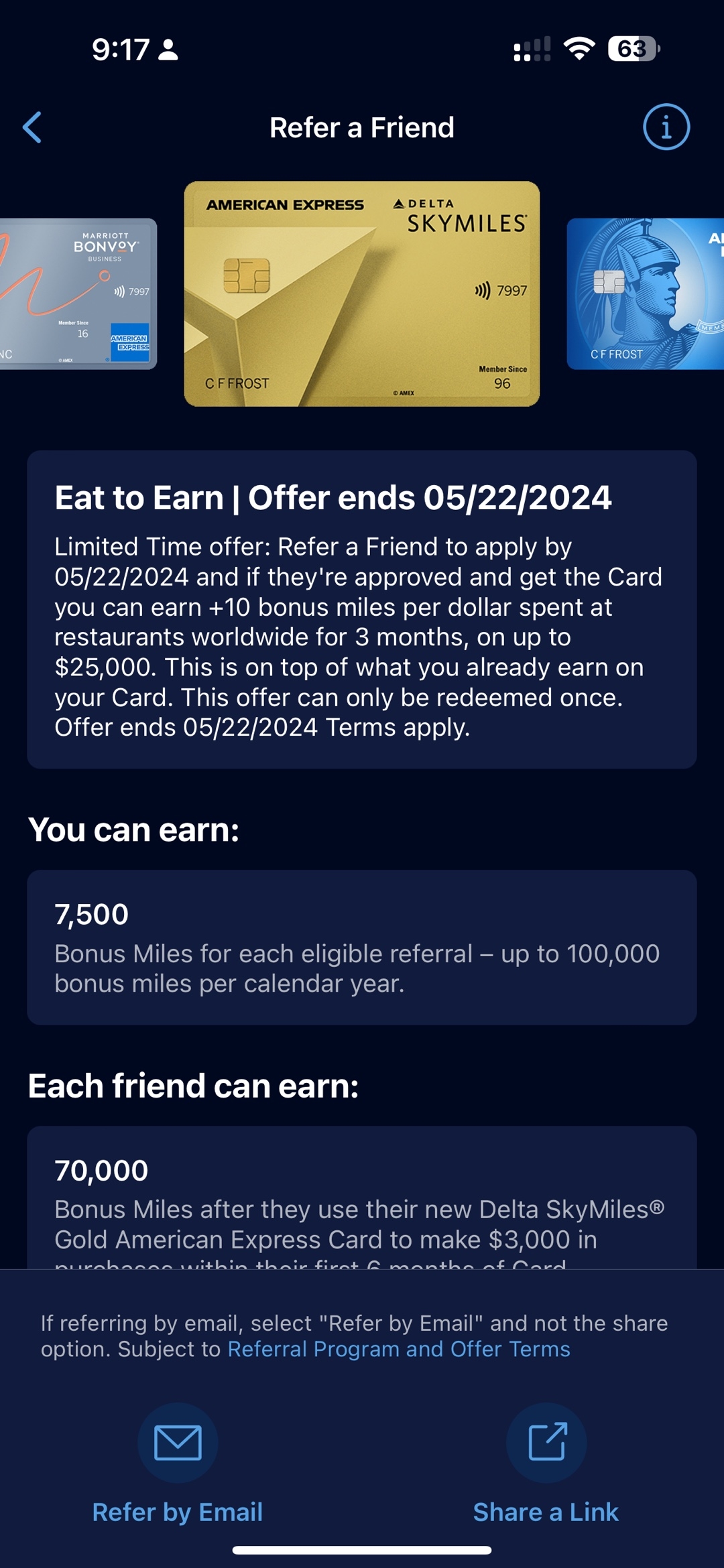 - 如果你需求量很大,可以分多张卡进行refer,使每张卡都有这个福利,不过$25K对绝大部分人都够刷了