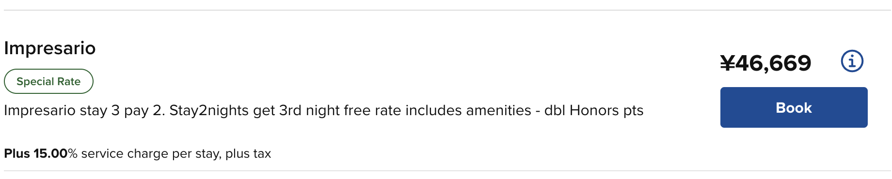 - 这个 package 没有别的待遇了,而 Impresario 还有早餐、升房、早住晚退、双倍积分。