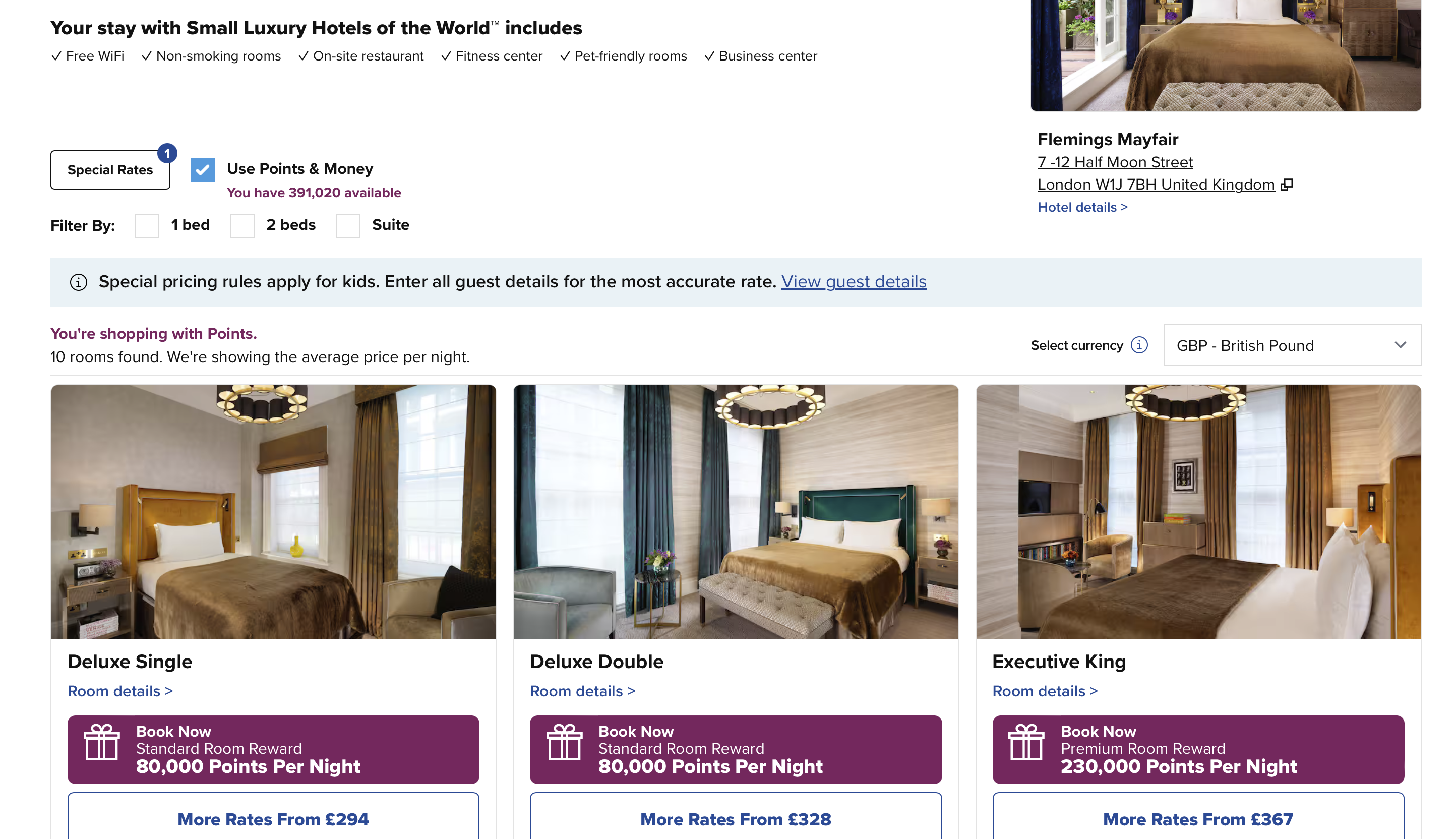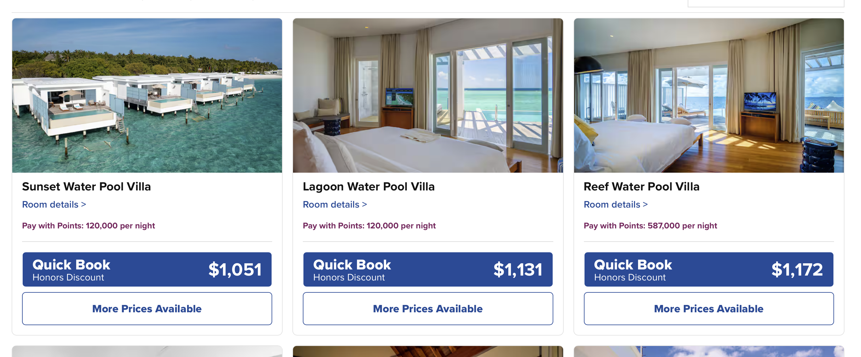 马尔代夫也有5家SLH上线了,肯定有朋友好奇积分能不能换。是可以的,但是在预览页面是显示没有的,用日历模式也没有,得去酒店详情页面挨个日期搜才能看到。这种120k的房间也是Free Night房券可以换的。