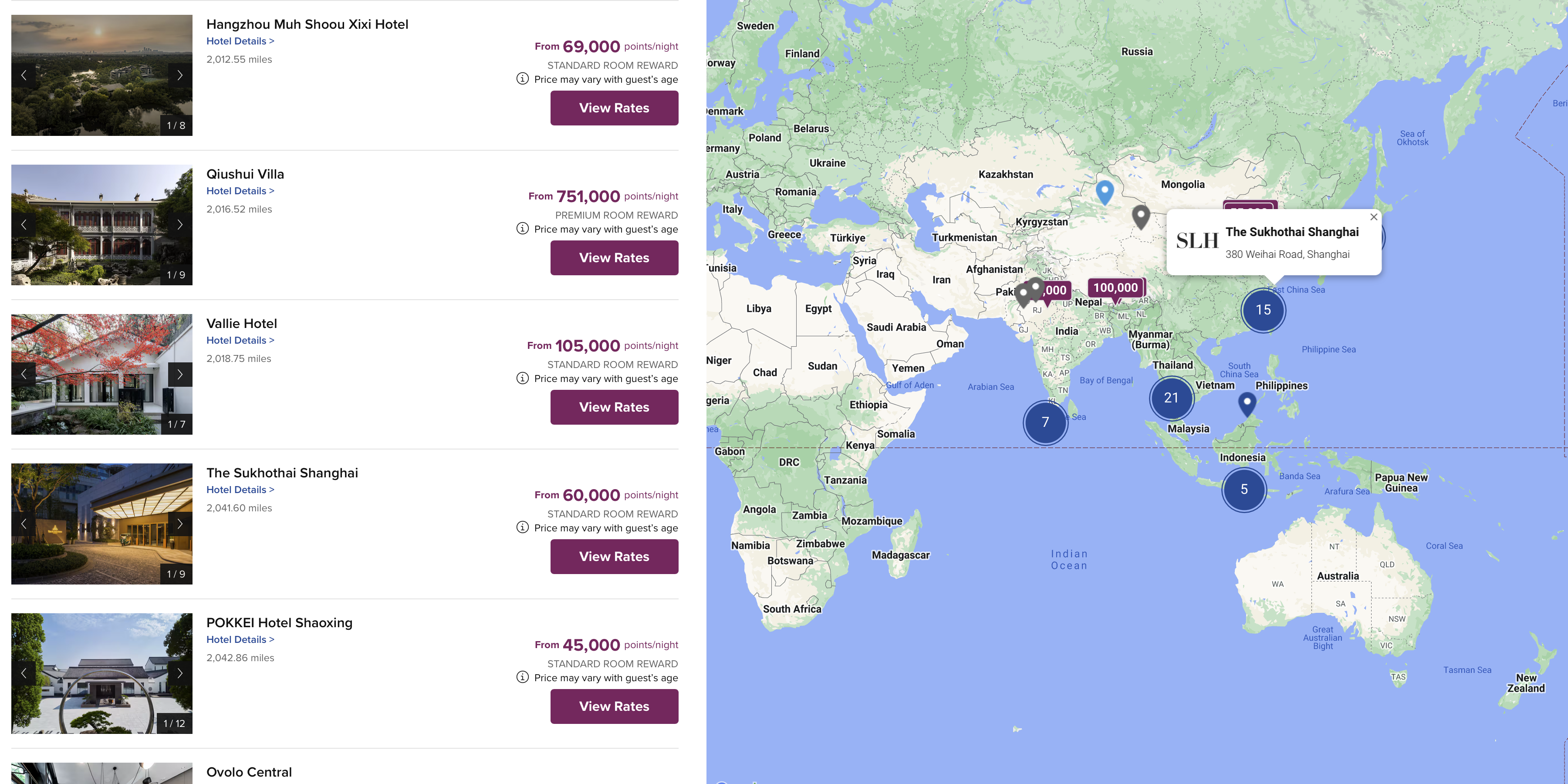 本以为这个进度不会很快,但是现在看来被打脸了。SLH和HH这两天又上架了一大波酒店,现在有大概400家SLH酒店已经可以在Hilton官网查到了。以下是截图的部分亚洲区域的酒店,可以看到之前我们的雅姐去过的杭州秋水山庄和绍兴璞祺艺境酒店都在列表上了。秋水山庄这种肯定被抢的很厉害。