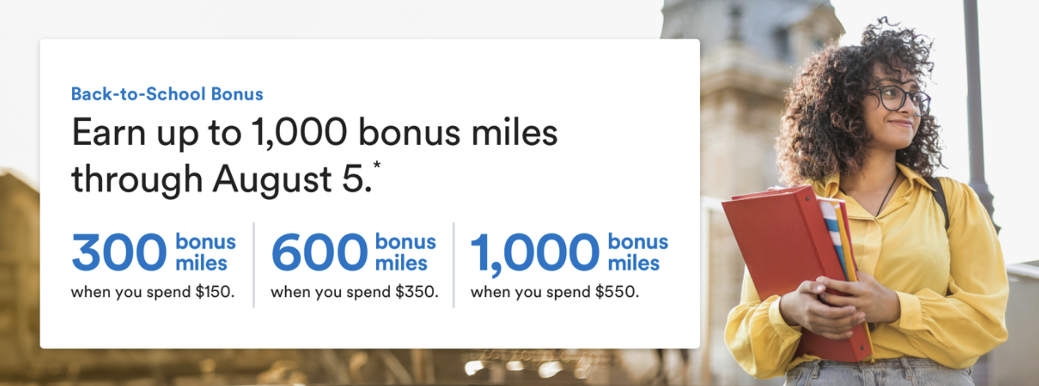 - 消费够 $300,送 1000 miles