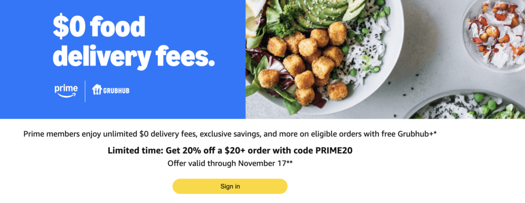 - Grubhub+的用户目前有如下的deals,如果没有Grubhub+但是有Amazon Prime到话记得Amazon Prime免费送Grubhub+,链接戳这里!