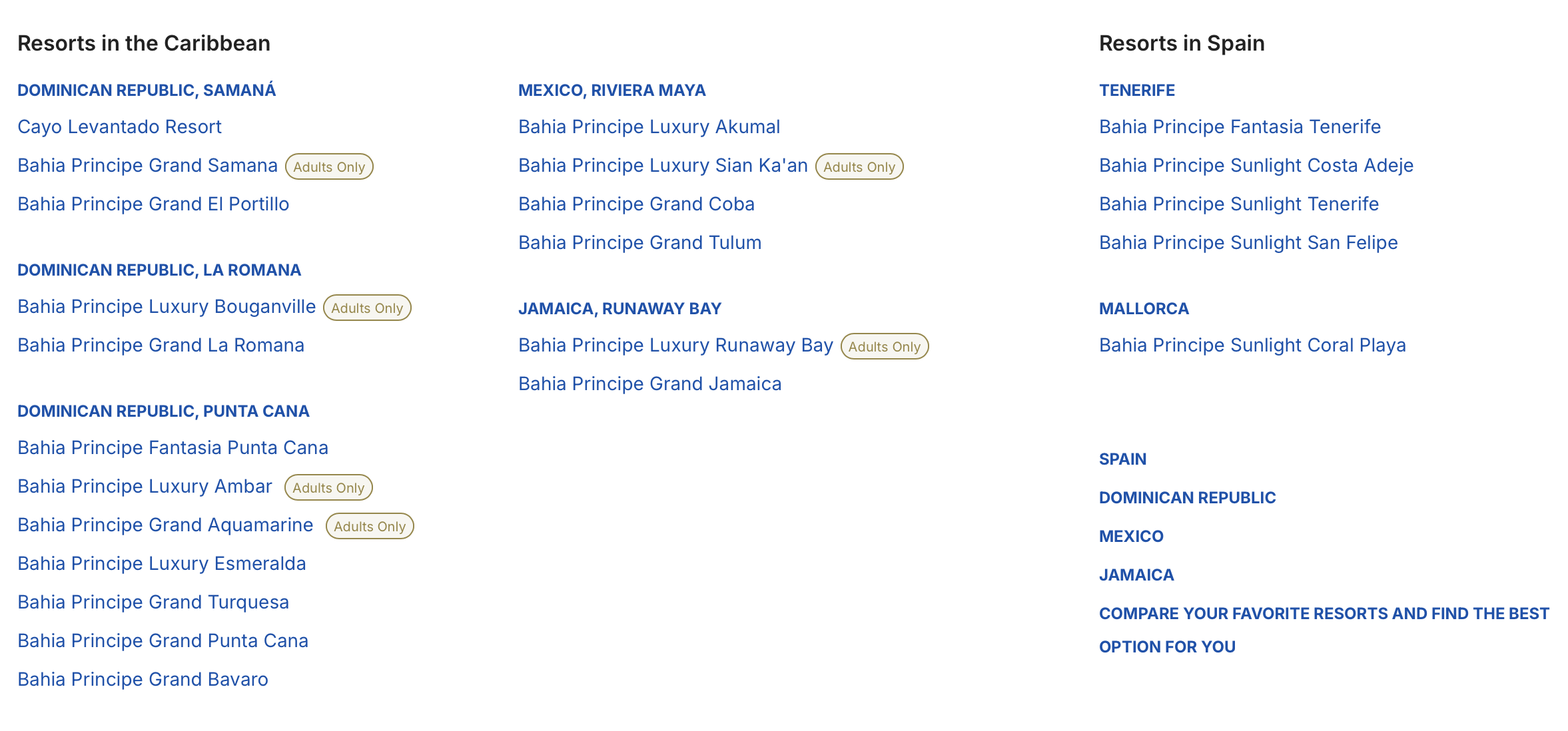 Grupo Piñero 是一家总部位于西班牙的集团公司,旗下有不少和旅行相关的业务,其中酒店方面主页是 Bahia Principe 品牌度假村。