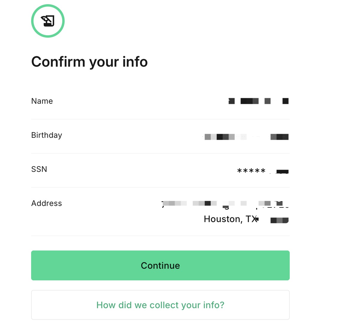 验证账户需要充钱,别充太多,在充值前需要验证个人,填入 SSN 后跟手机号,会自动关联出你的基本信息(没有 Hard Pull,不影响信用记录),如果信息不对,可以进行修改。