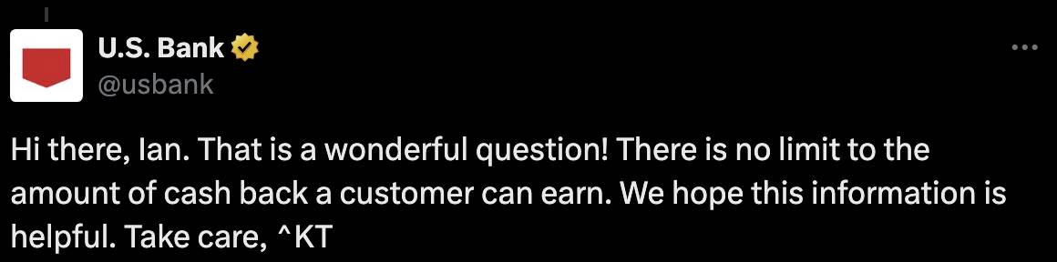 【2024.10更新】US Bank在X上公布消息,此卡可以获得4%返现,而且没有金额上限