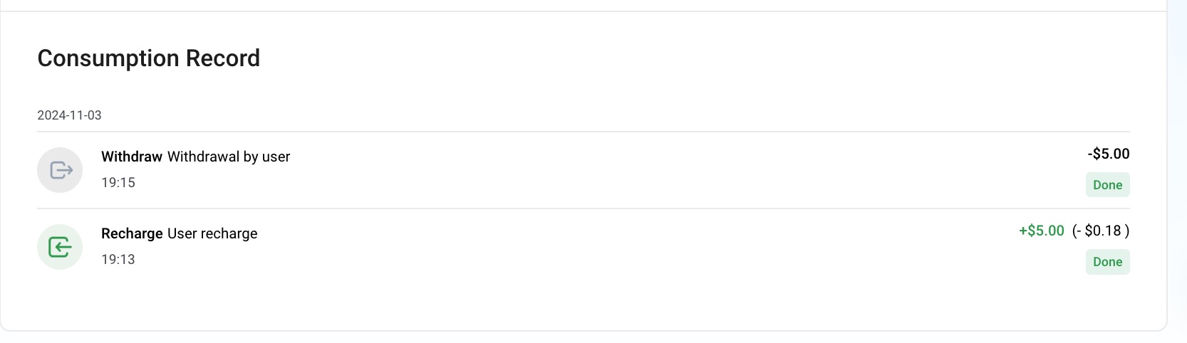 页面上可以方便查看充值跟提现记录