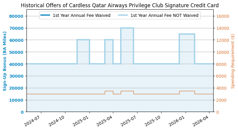 - 开卡奖励: 75,000 BA Miles.