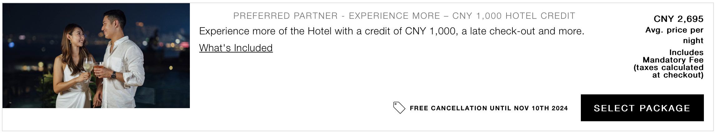 例如新上架的杭州中心四季,官网有个额外1000元消费额度的促销套餐。