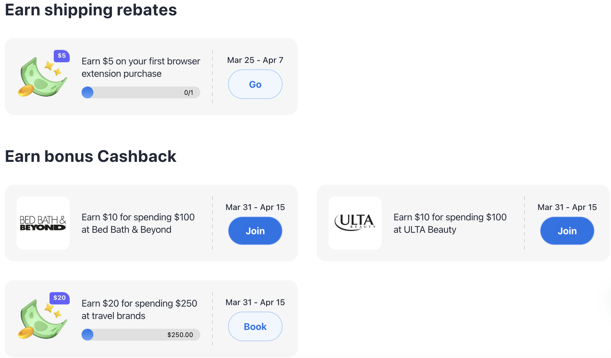 用户完成ShopBack平台设置的限时购物任务(Quests)即可解锁相应奖励,具体奖励金额和任务内容会不定期调整