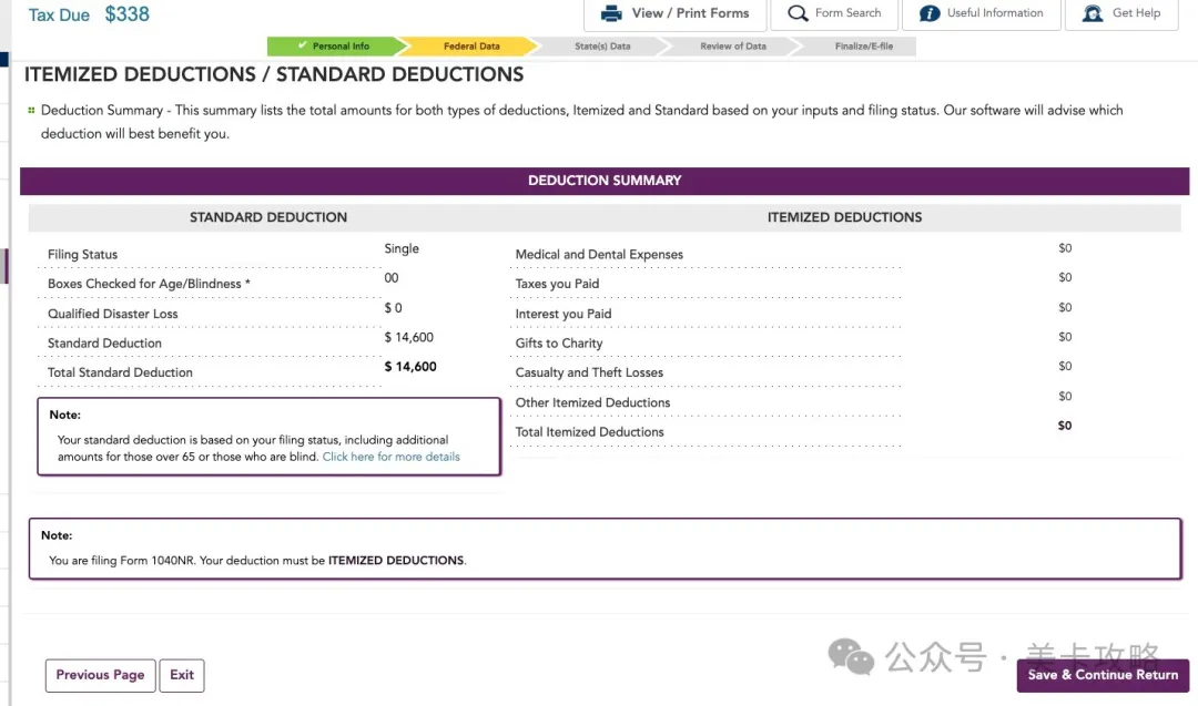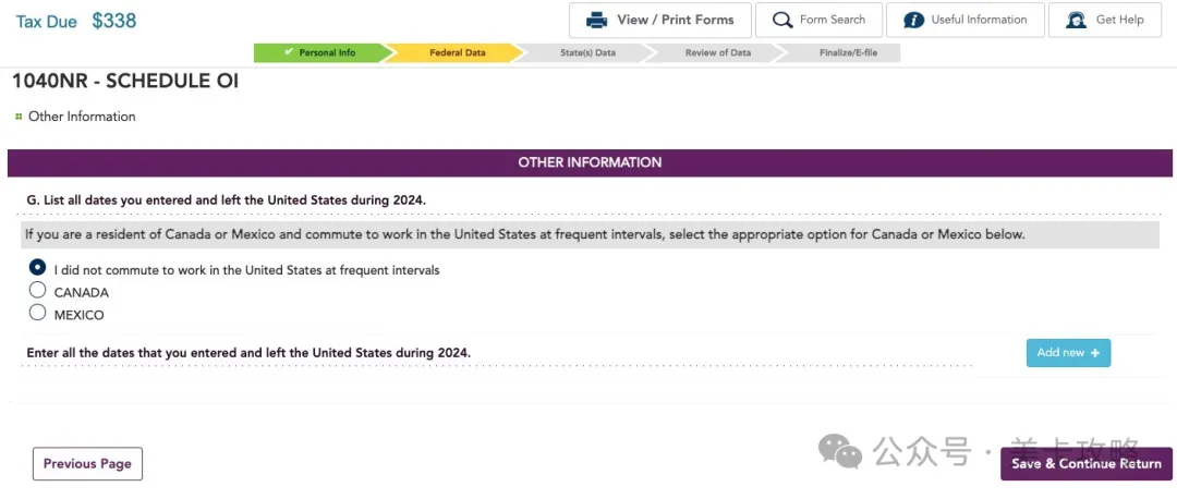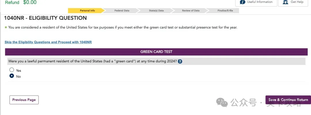接下来是1040NR的相关问题(这一点OLT做得很好,可以快速搞定你后面需要填写的内容)