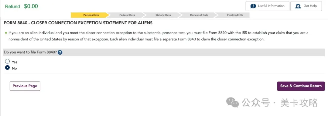 Form 8840/8843对于玩卡的“云居民”是没用的,全部跳过。