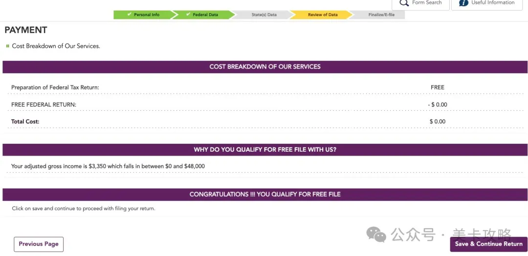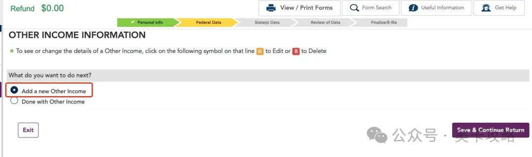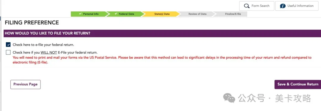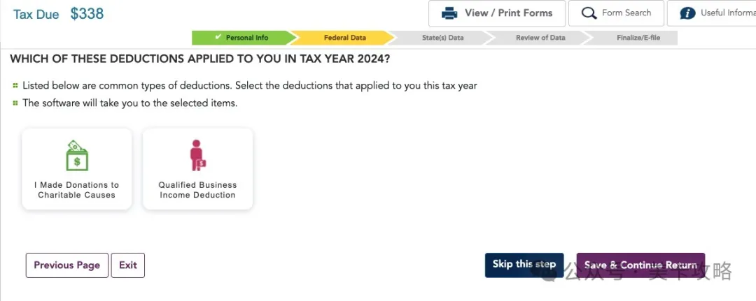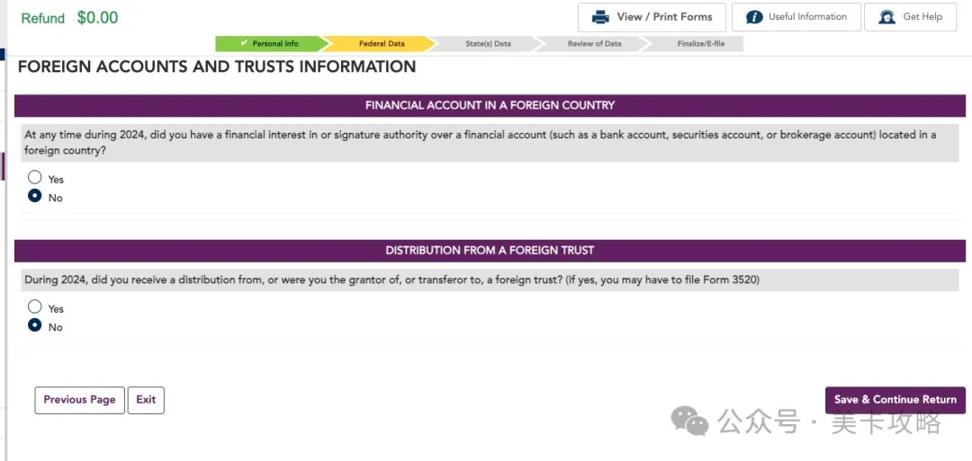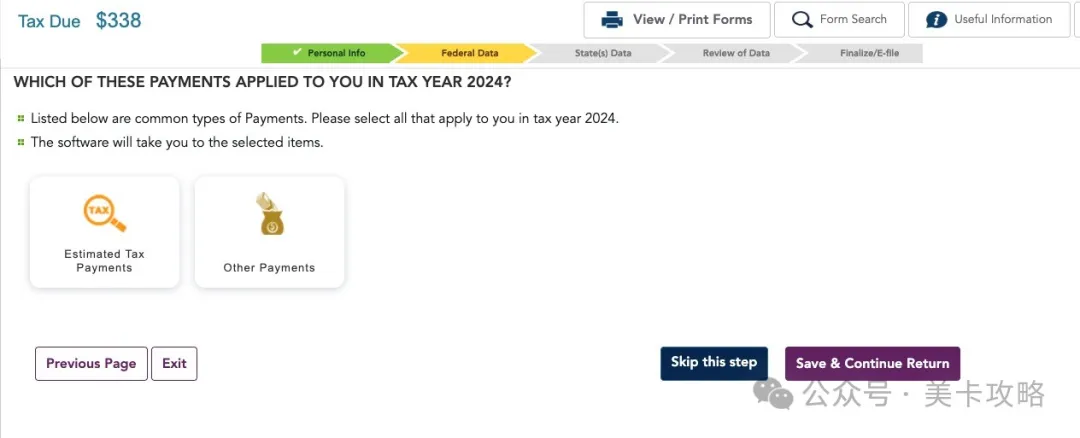 我简单展示下步骤,可能会有遗漏,面板都很傻瓜式,大家看着选择,如果搞不定,「美卡攻略-潮酷社群」知识星球的星友直接微信私信我(USCCS_01),因为报税要截止了,用微信可以比较及时反馈。