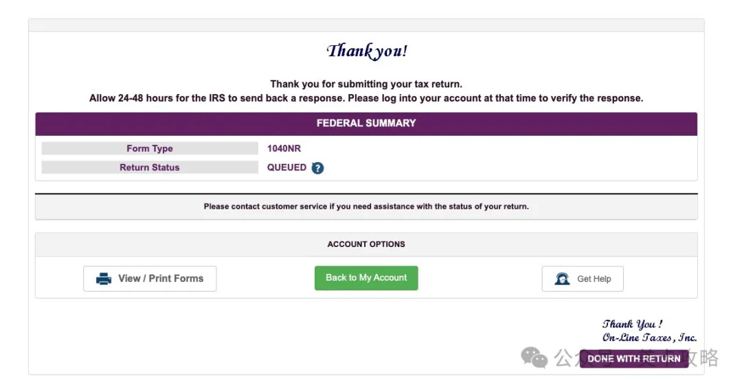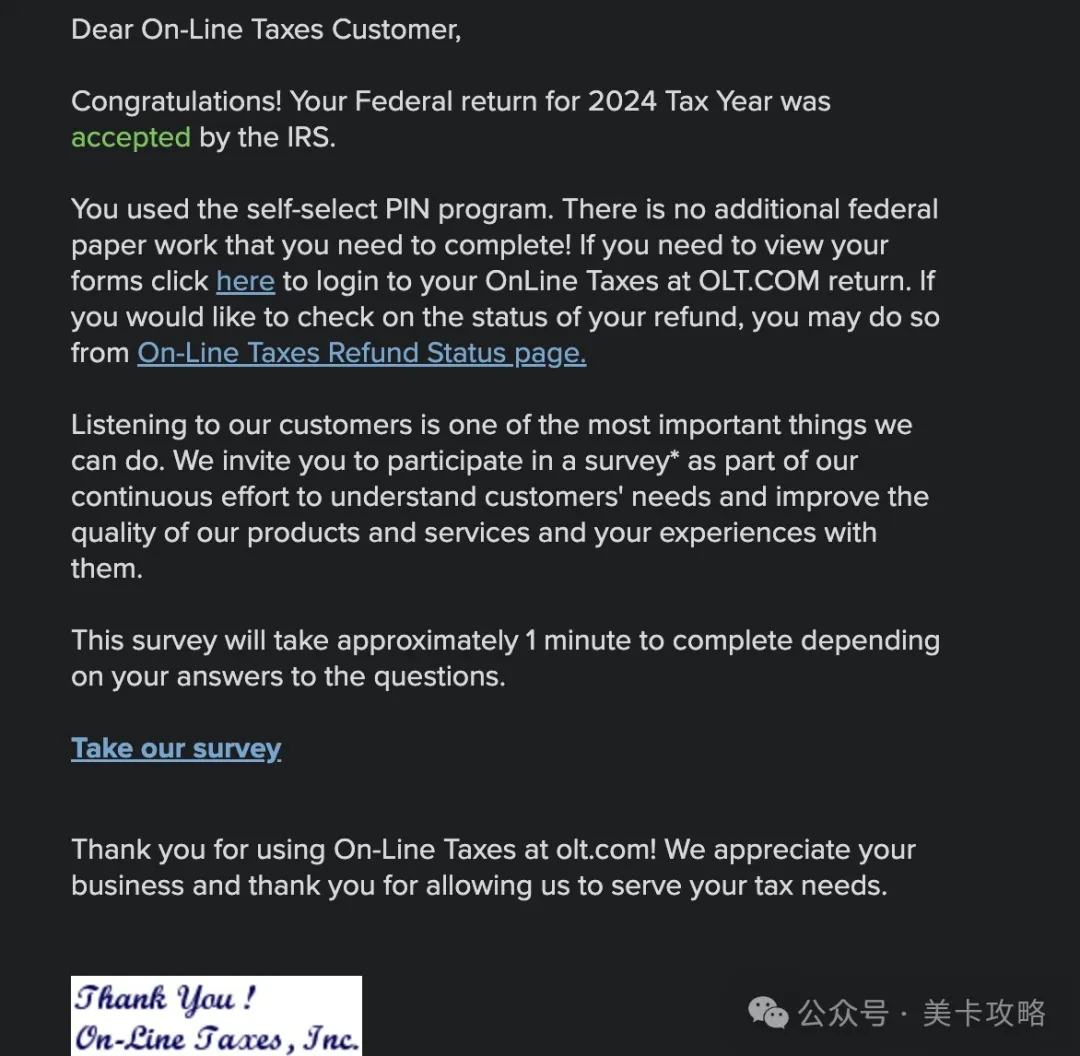 等IRS accepted后(会收到邮件通知,邮件标题:Federal Acknowledgement – Accepted Return),注意,有时候系统会对接错误(也会邮件提醒你),这时候需要回到OLT,重新提交一次。详细参考:「美卡攻略-潮酷社群」知识星球