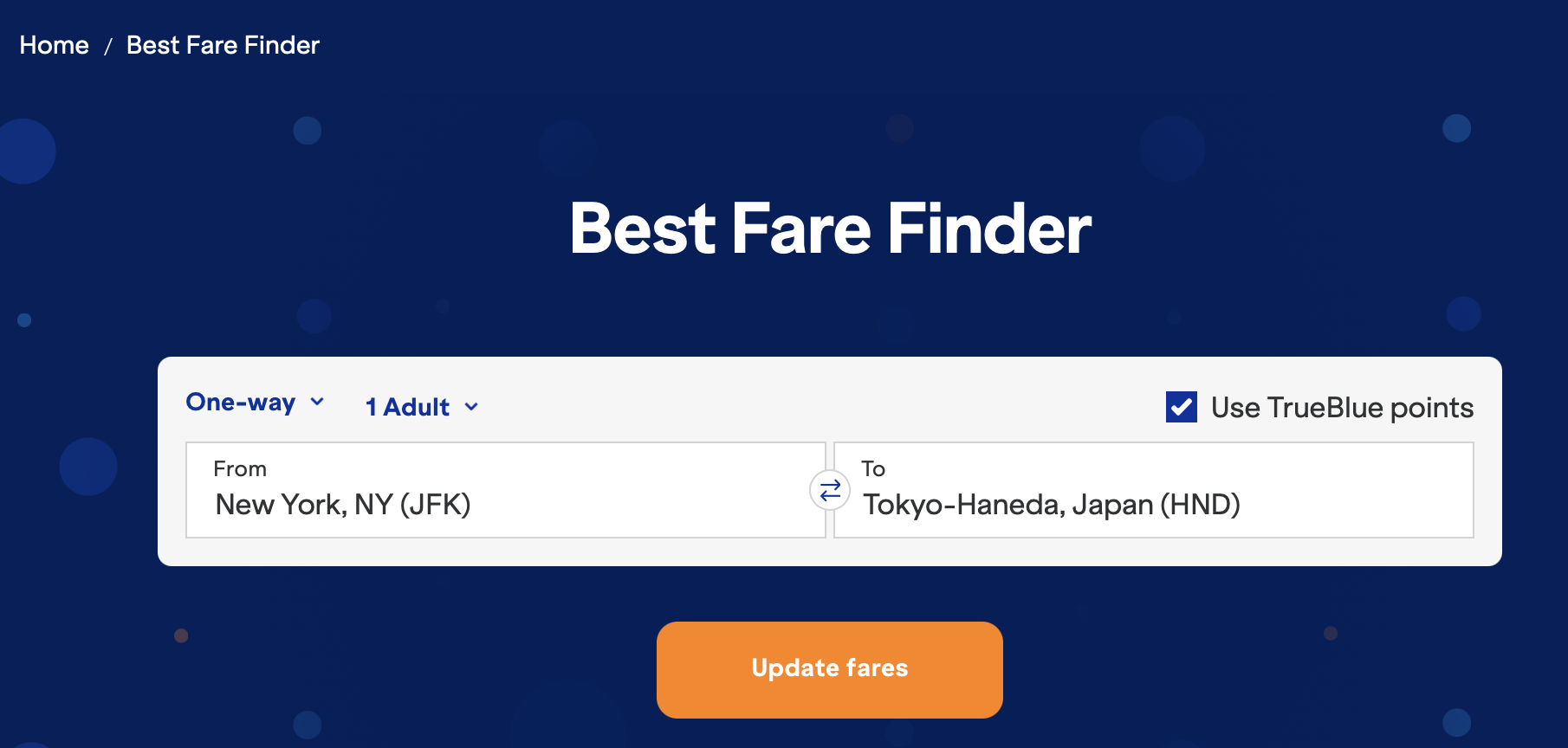 查里程票的时候推荐大家使用 B6 的 Best Fare Finder,其实就是快速查是否有票的日历总览(calendar view)。