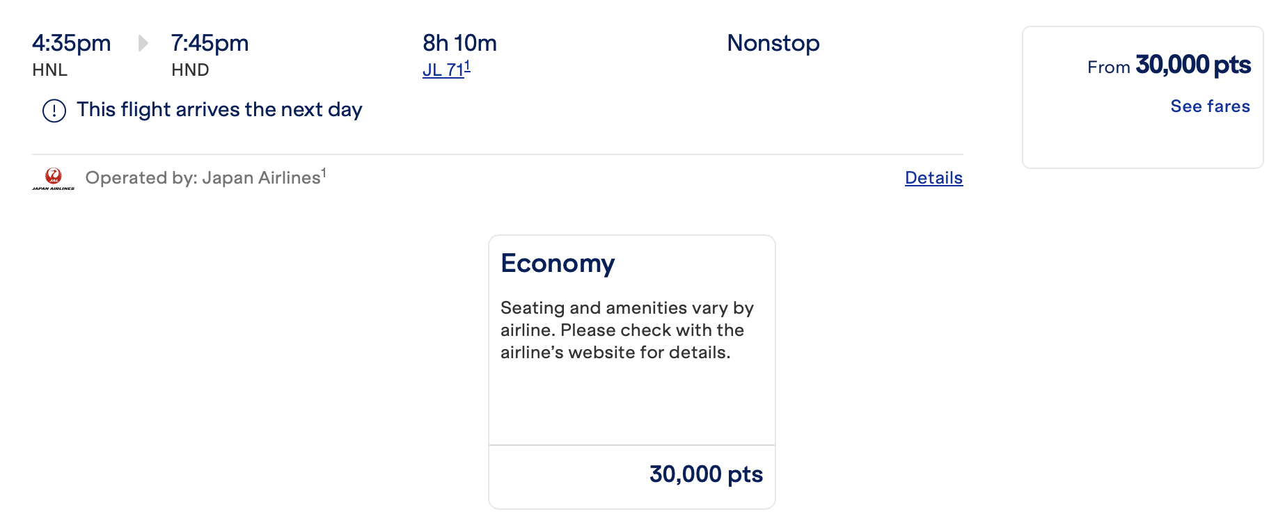 | 夏威夷 - 日本 | HNL-HND | 30,000 | 40,000 | 55,000 |