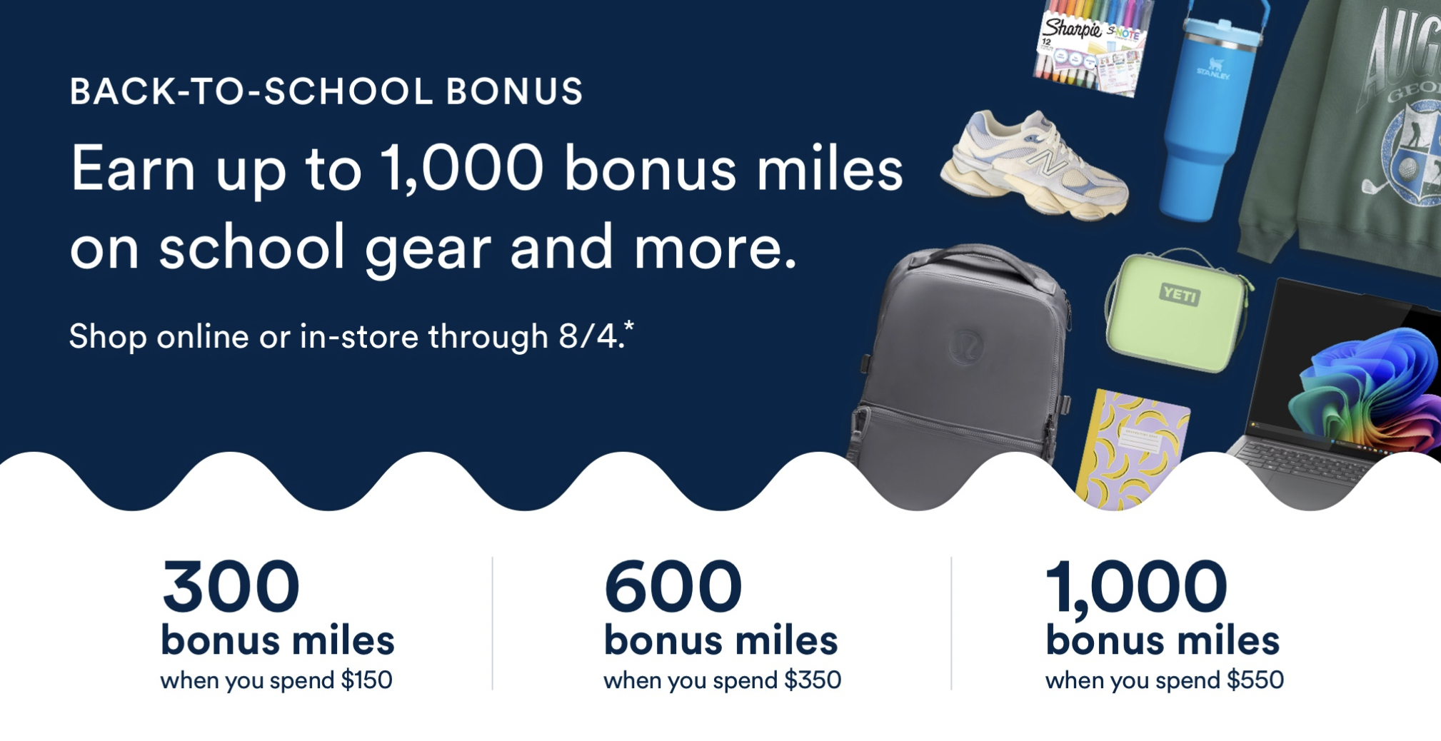 - 消费够 $250,送 1000 miles