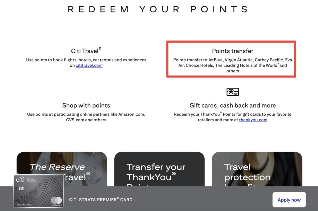 从 Citi 的官方信息来看,似乎本意并非将这一转点优惠开放给所有卡片。比如在 Citi 官网对高端卡 Strata Elite 的介绍中明确提到了TYP 转 AA 里程这一福利。