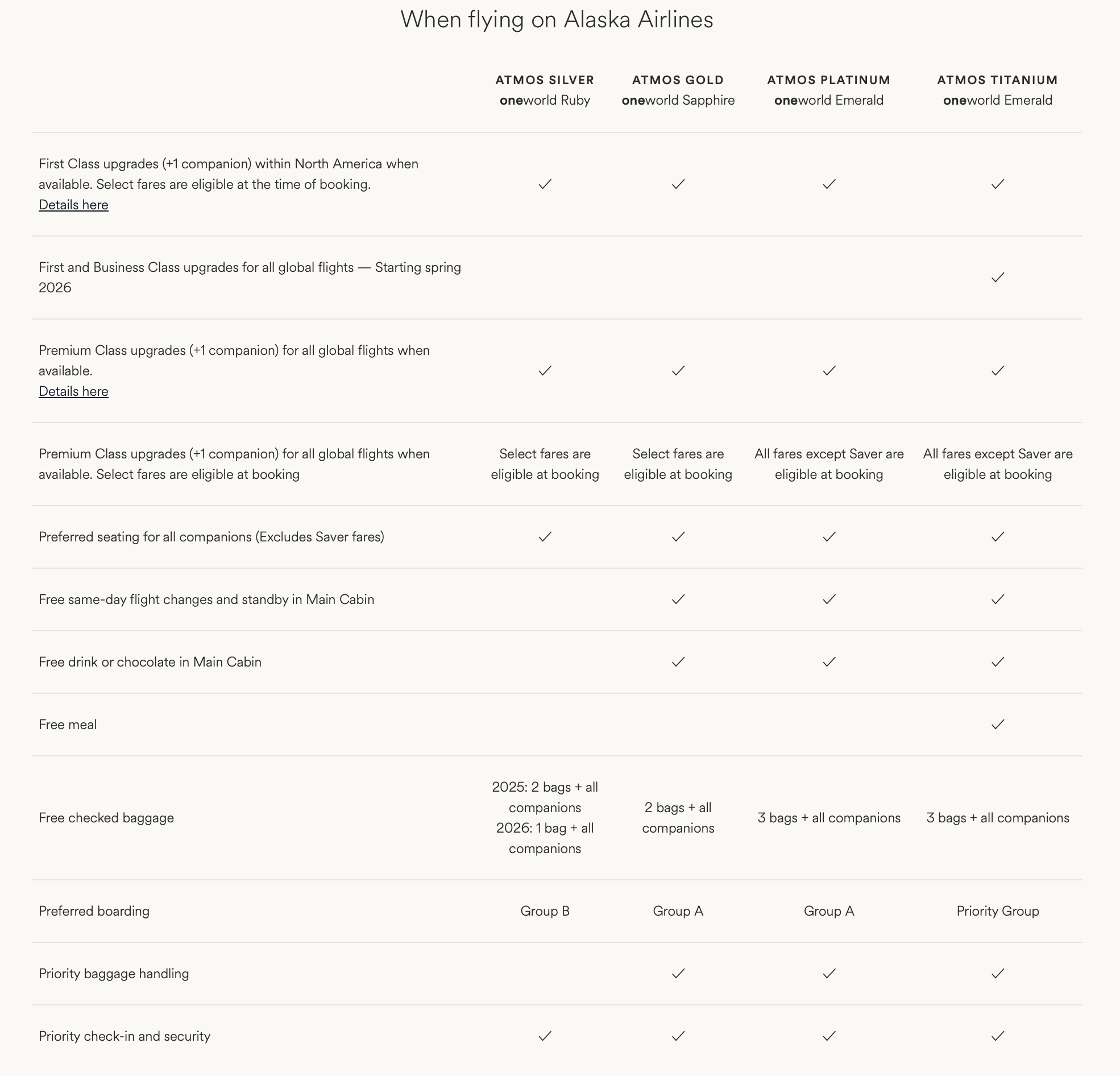 - 顶级会员福利增强:顶级的 Titanium 会员从2026年起,将可在 Alaska 和 Hawaiian 航空的国际航线上享受免费升舱福利