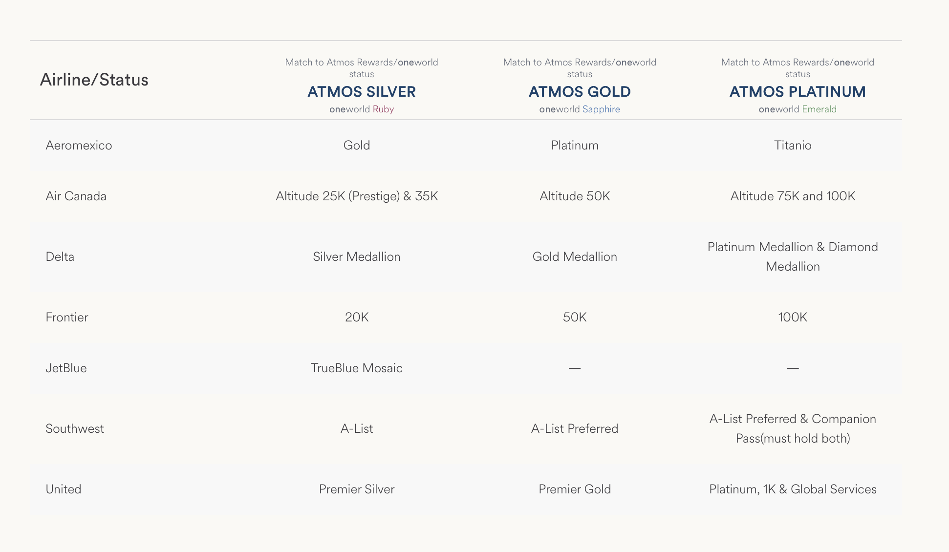 - 会员要求变化:Atmos Platinum(对标MVP 75K)要求涨到 80k 等级点数;Atmos Titanium(对标MVP 100K)要求涨到 135k 等级点数