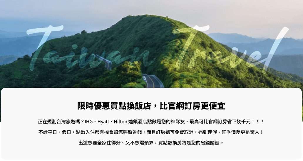 時不時會看到有些人分享購買特價點數,兌換日本當地的住宿很划算(點我),其實台灣境內有一些酒店,也可以透過相同的方式節省出遊住宿花費。從台灣頭到台灣尾,從高階奢華酒店到平價實惠住宿,都有機會透過購買特價點數兌換住宿,幫自己創造住房折扣!也可以隨時參考TripPlus團隊所整理的台灣住宿划算兌換推薦(點我),會不定時更新內容,歡迎長期關注!接下來就透過這篇文章,來分享目前所進行的一些連鎖酒店集團點數特賣活動,給讀者們參考。
