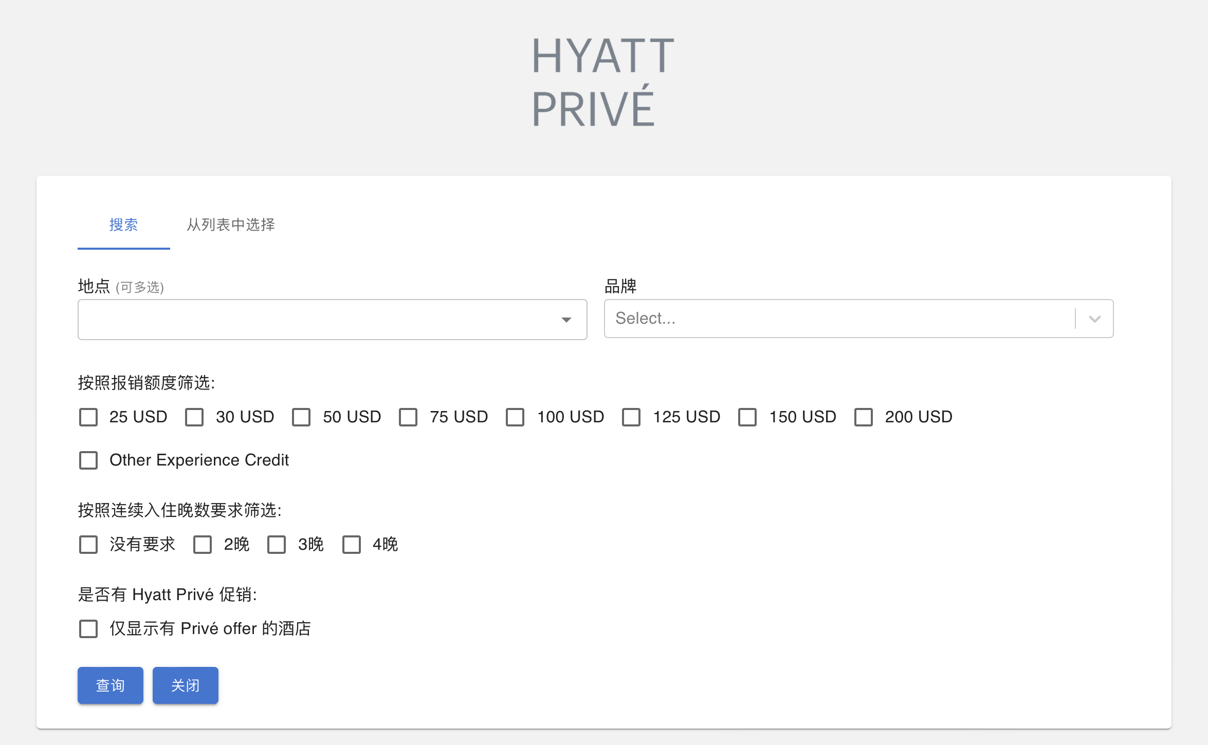 通过设置搜索框,可以根据你想要的地区、额度、是否有 promotion 等条件筛选酒店。