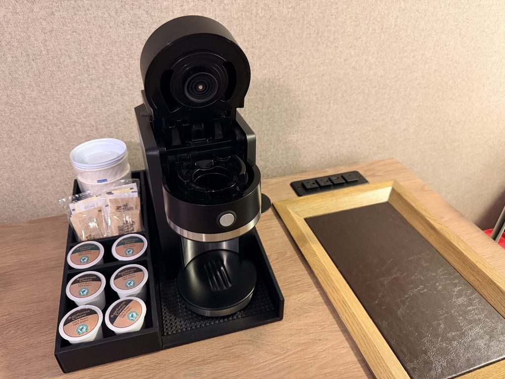 服務人員解釋各項凱悅集團「環球客」會籍,以及美國運通「FHR」訂房功能的相關入住福利。在美國運通「FHR」方面,有提供$100美金的酒店內消費退額補助,可使用於餐飲消費,或是使用於芳療區 (Spa) 的消費,並提供每日兩份免費早餐的供應,以及額外的一張禮品兌換券。而凱悅集團「環球客」會籍的福利,則是提供一張兩人份的免費早餐兌換券,以及額外的一張禮品兌換券。