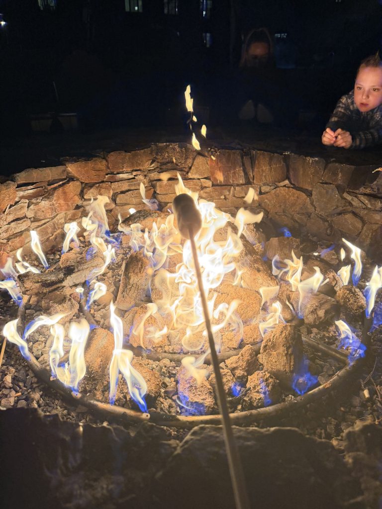 酒店內有設置室外游泳池與按摩池,池子內的水都有經過加熱,所以即使是在冬季也可以使用,而且游泳池還有「半室內」入水的水道設計,還是挺貼心的。游泳池旁邊還有火爐,晚上可以前往「Tahoe Provision」咖啡店領取棉花糖組,到游泳池旁的火爐來烤棉花糖。