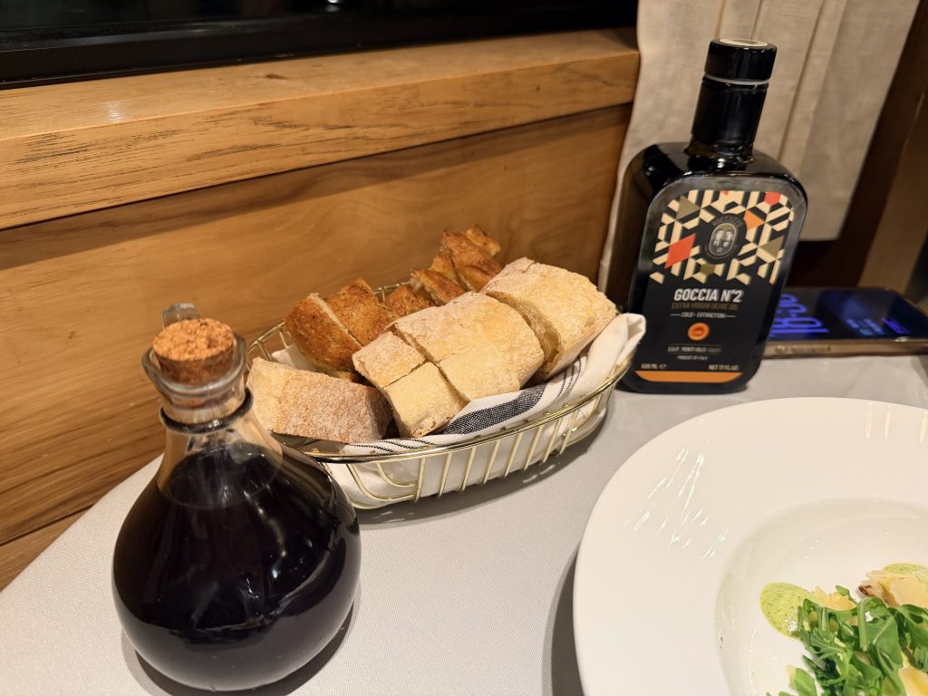 酒店的主餐廳「Osteria Sierra」提供三餐時段,因此我將入住時獲得的$100美金退額,在這裡飽餐一頓。點了一份套餐外加一份龍蝦義大利麵主餐,最後的價格加上小費為$142美金。餐食部分還挺精緻好吃的,但是在晚餐時段只有一位服務人員,所以會花比較多的時間在等候。