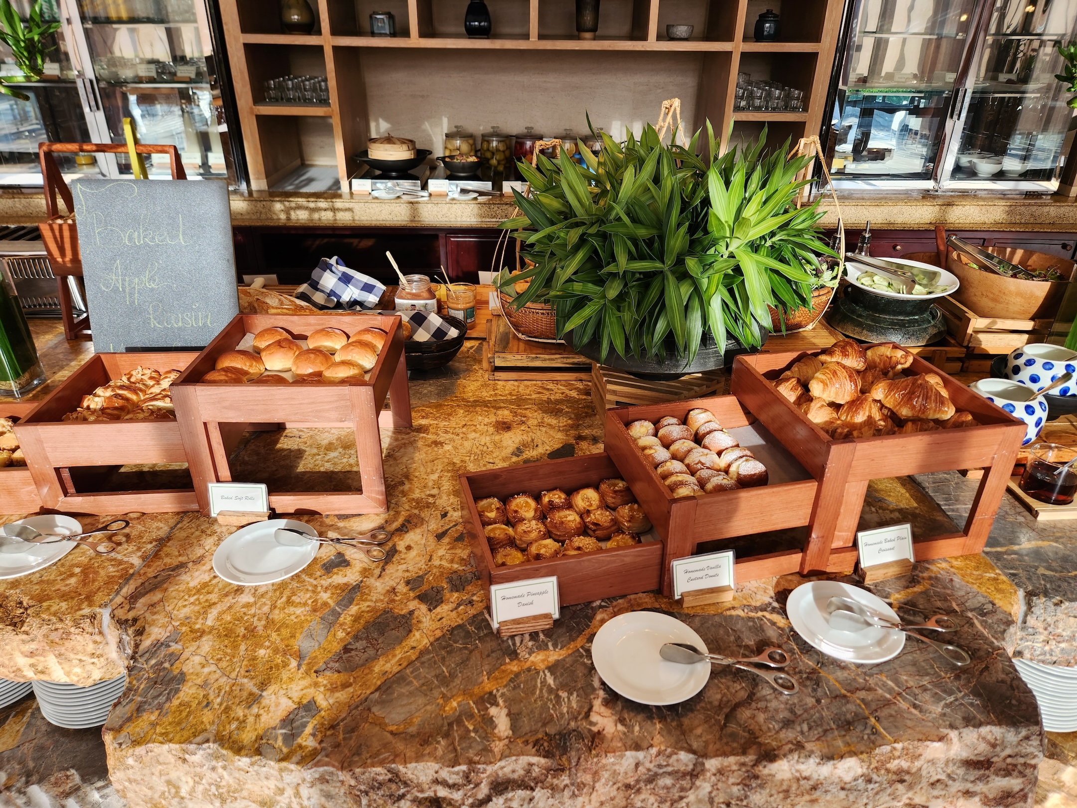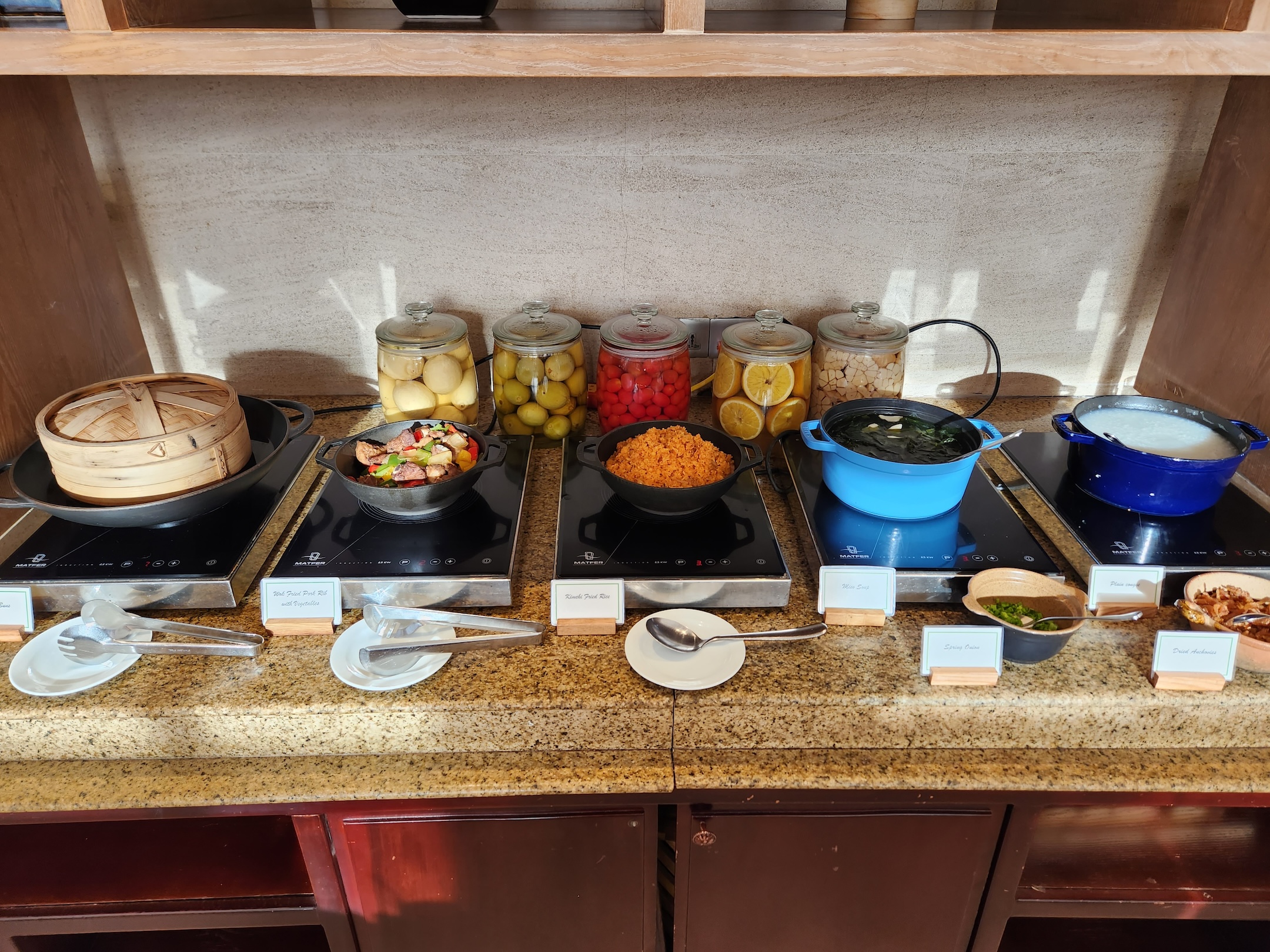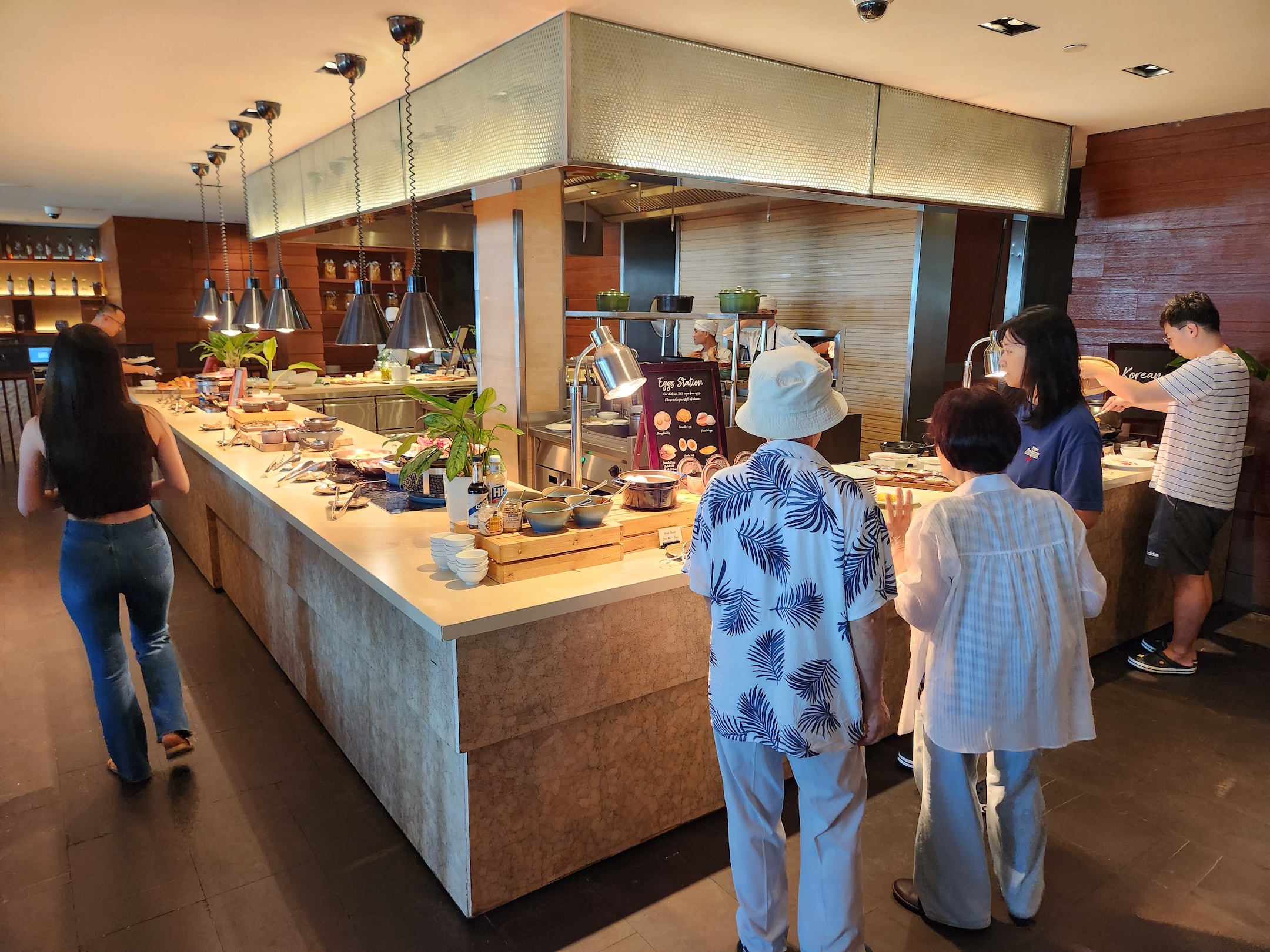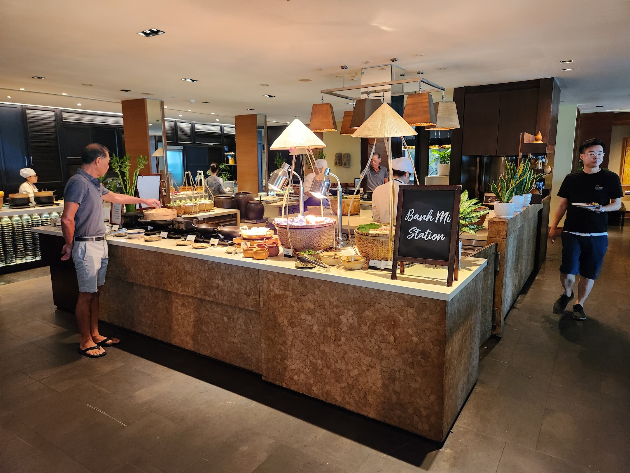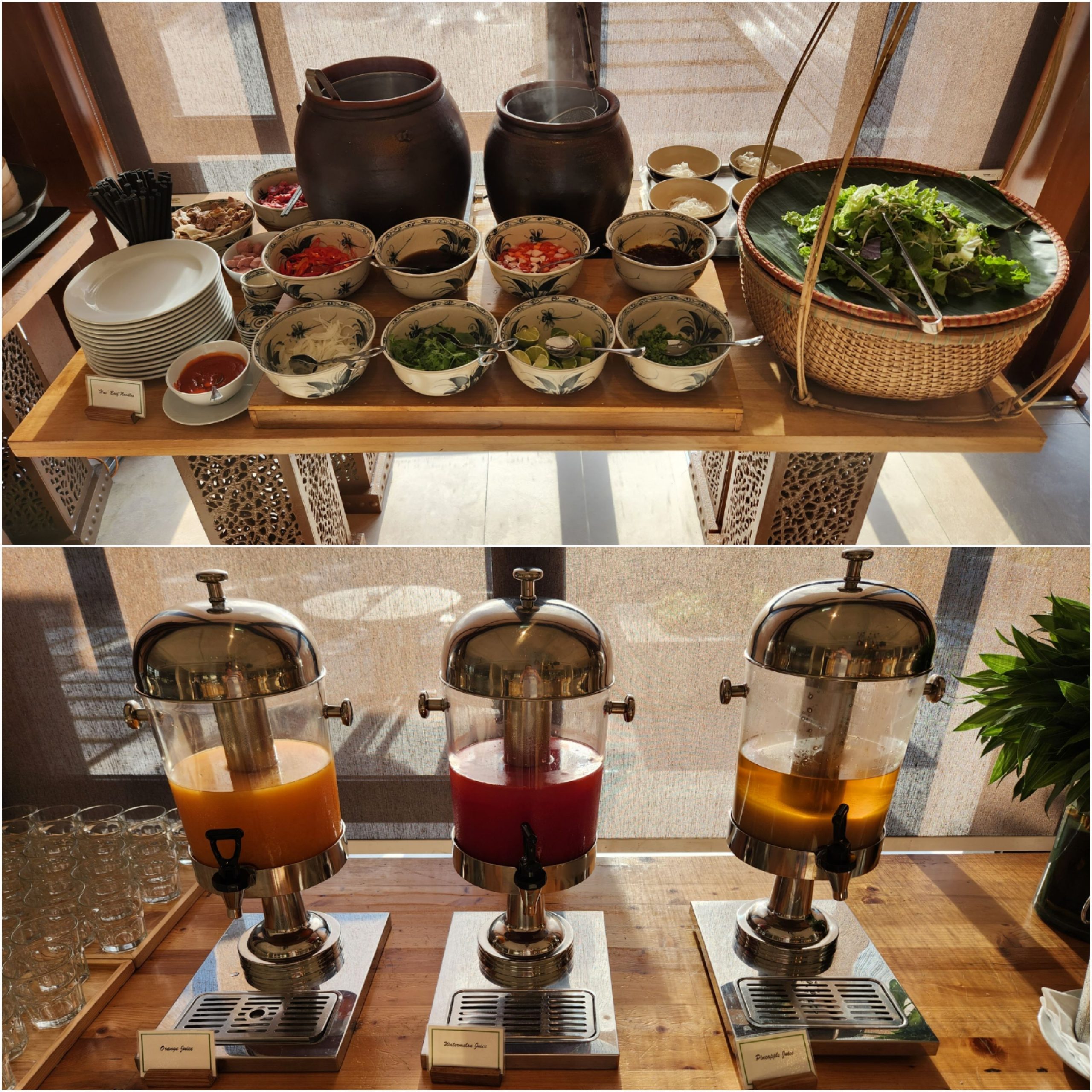 持有「環球客」會籍的房客,其中一個入住的福利,就是可以在「嘉賓軒」(Regency Club) 享用免費早餐。峴港凱悅渡假村的嘉賓軒內,在早餐時段都會提供自助式的餐飲選擇,有許多熱食/冷盤/麵包/飲料等等的供應。除此之外,也有提供「現點現做」的餐飲,除了有西式的蛋類料理可以選擇之外,也可以選擇一些傳統的越式料理(例如越式河粉)喔!整體來說餐飲的品質還算是有中上的水準,而且一大早就可以品嘗到豐富的早餐,真心覺得很不錯!讀者們可以參考以下的照片,來看看餐點的選項。