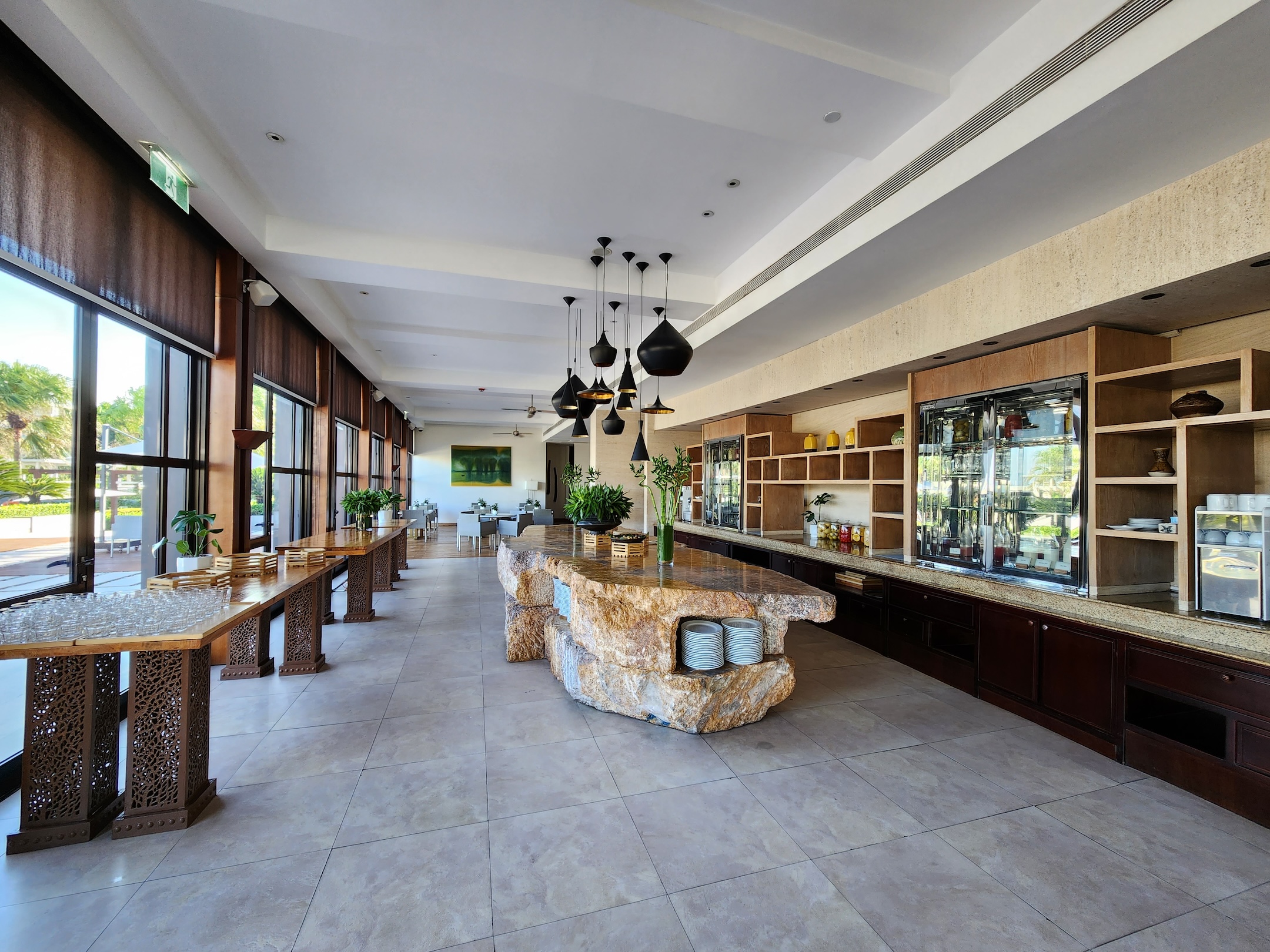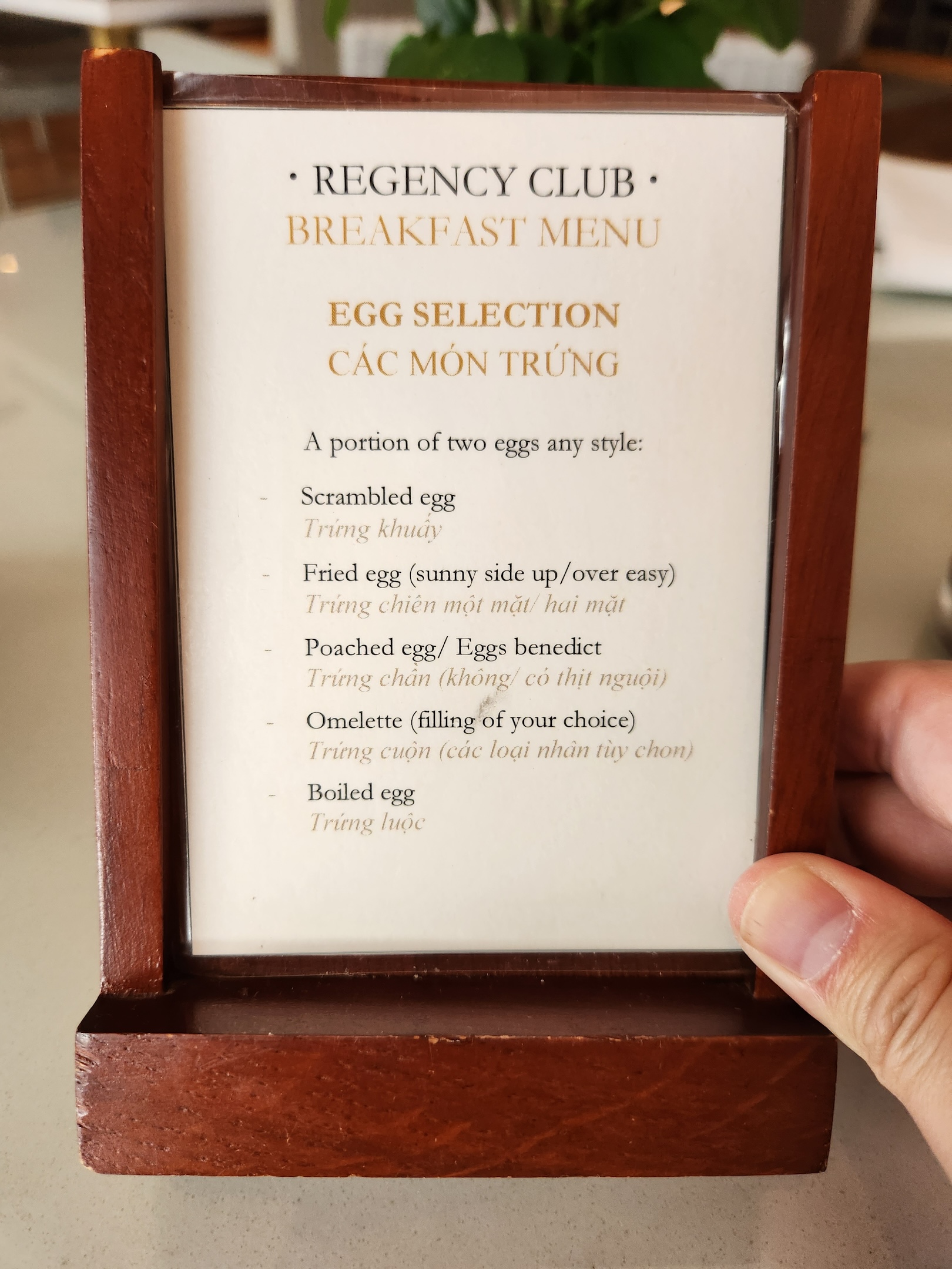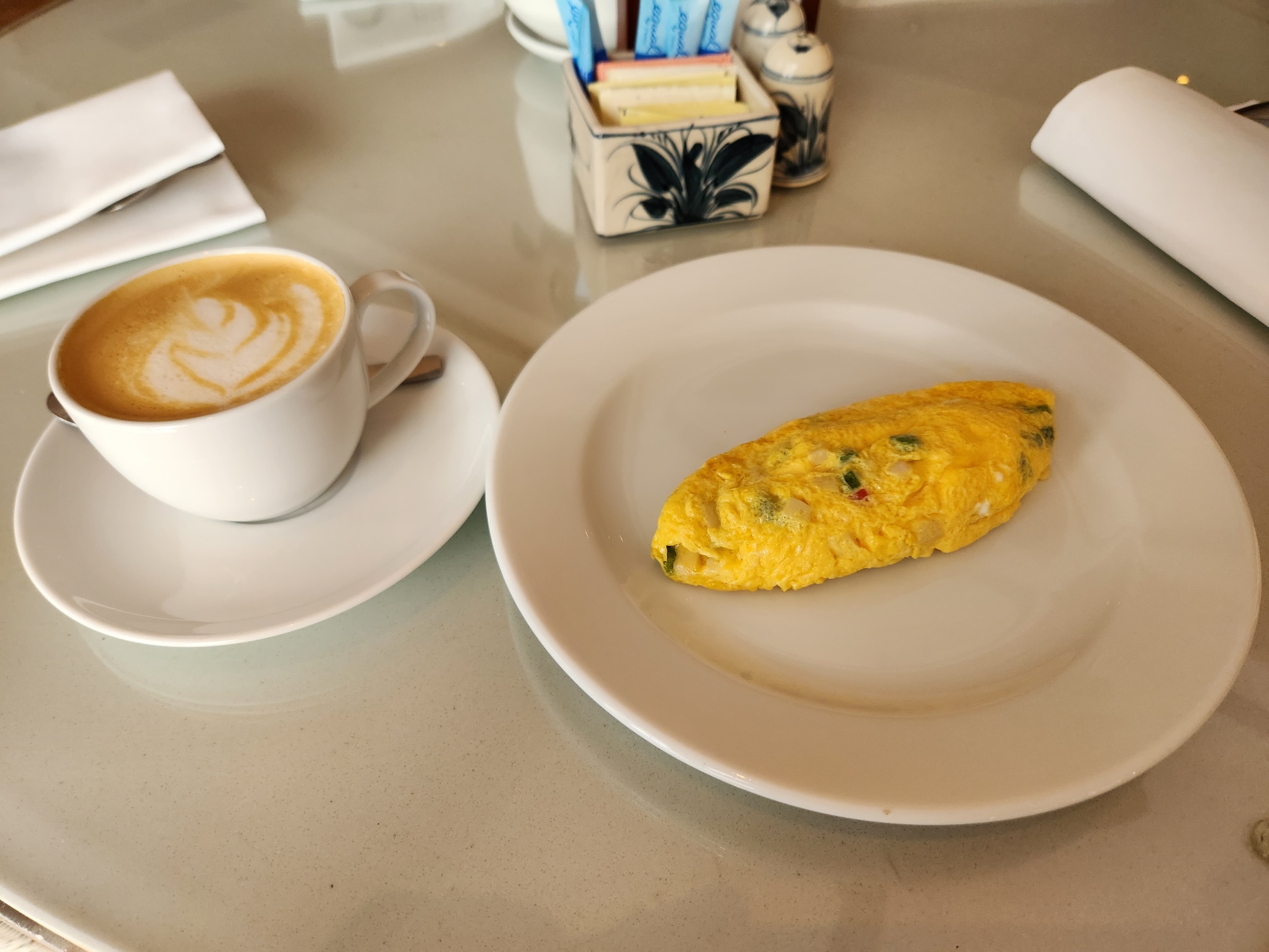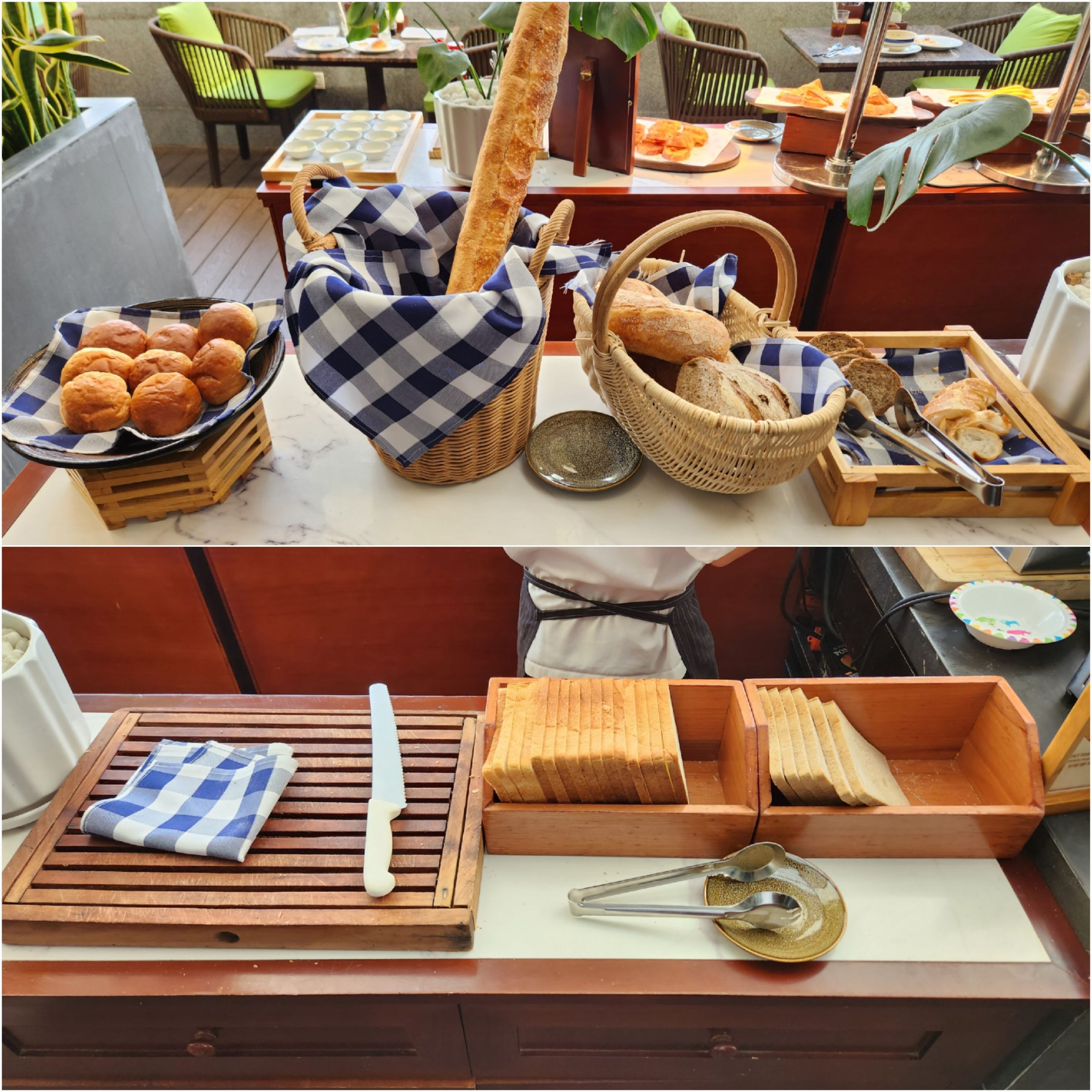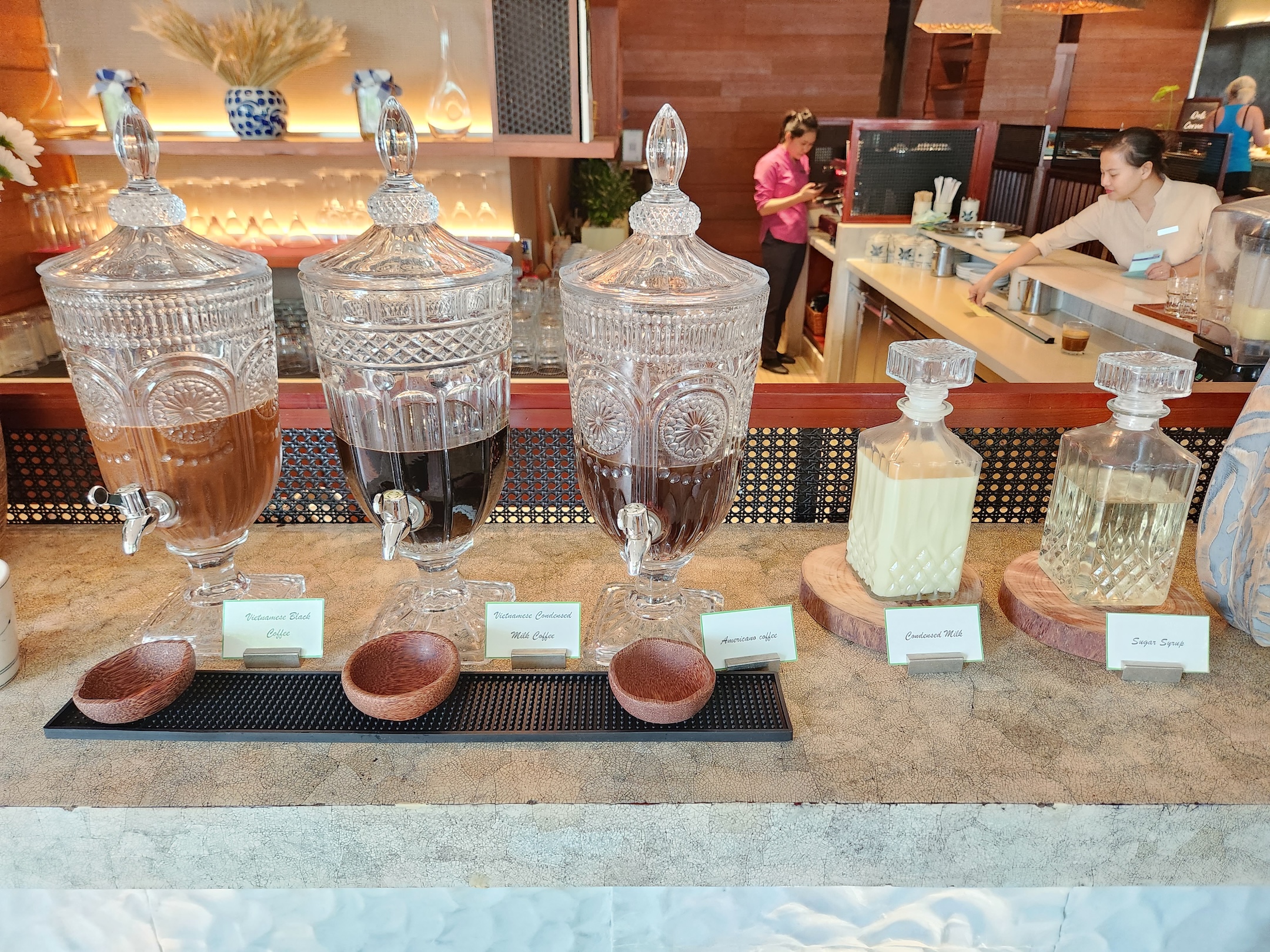 持有「環球客」會籍的房客,其中一個入住的福利,就是可以在「嘉賓軒」(Regency Club) 享用免費早餐。峴港凱悅渡假村的嘉賓軒內,在早餐時段都會提供自助式的餐飲選擇,有許多熱食/冷盤/麵包/飲料等等的供應。除此之外,也有提供「現點現做」的餐飲,除了有西式的蛋類料理可以選擇之外,也可以選擇一些傳統的越式料理(例如越式河粉)喔!整體來說餐飲的品質還算是有中上的水準,而且一大早就可以品嘗到豐富的早餐,真心覺得很不錯!讀者們可以參考以下的照片,來看看餐點的選項。