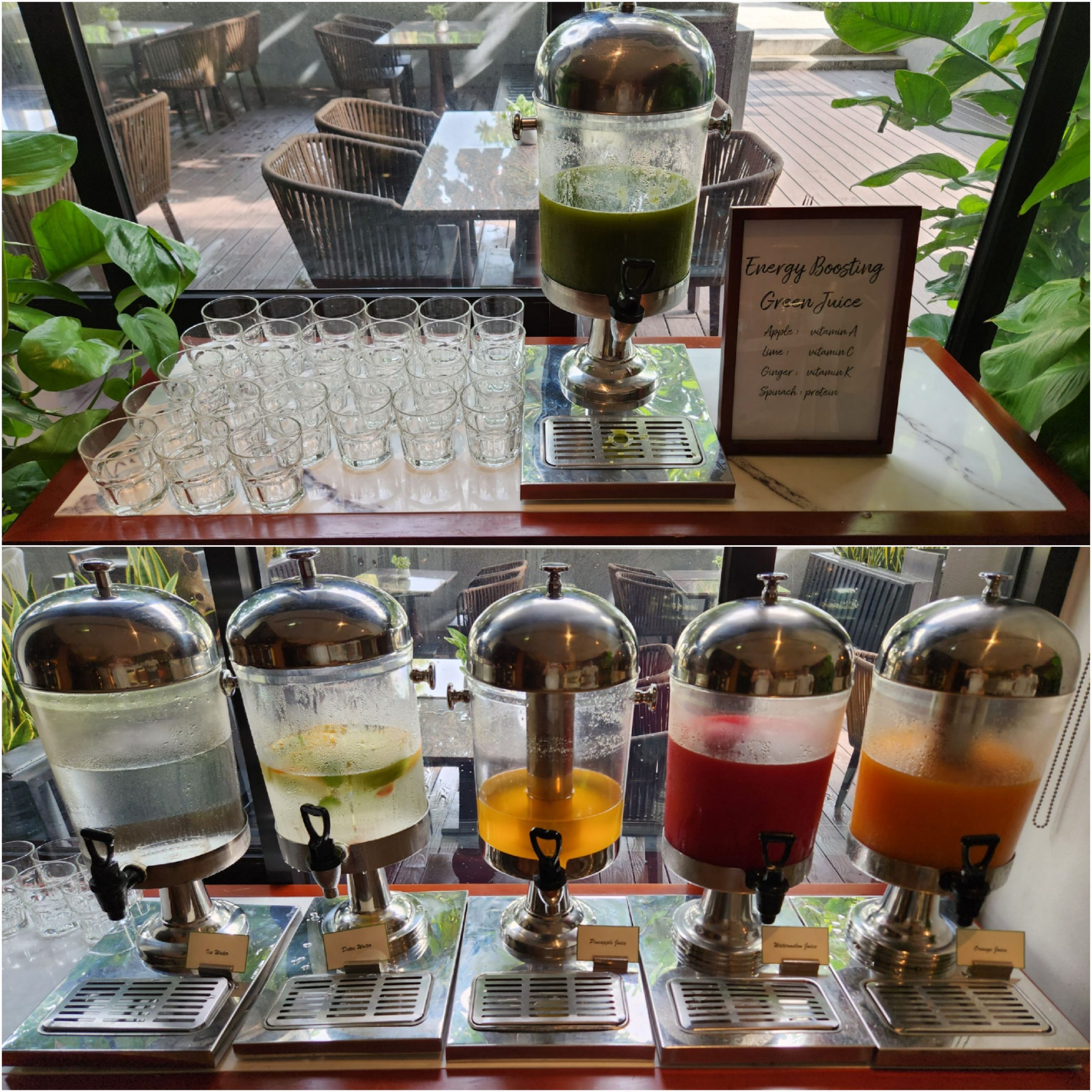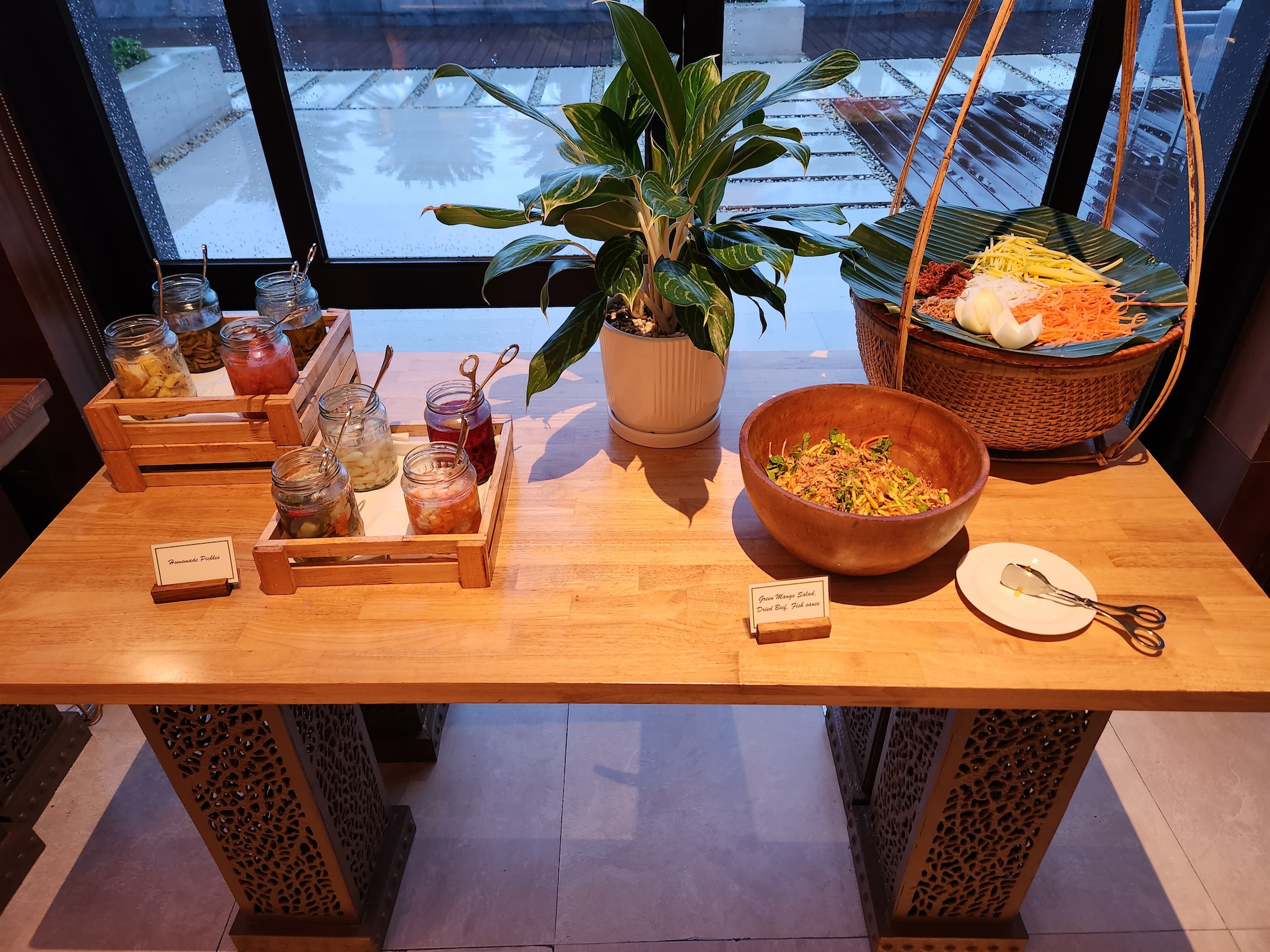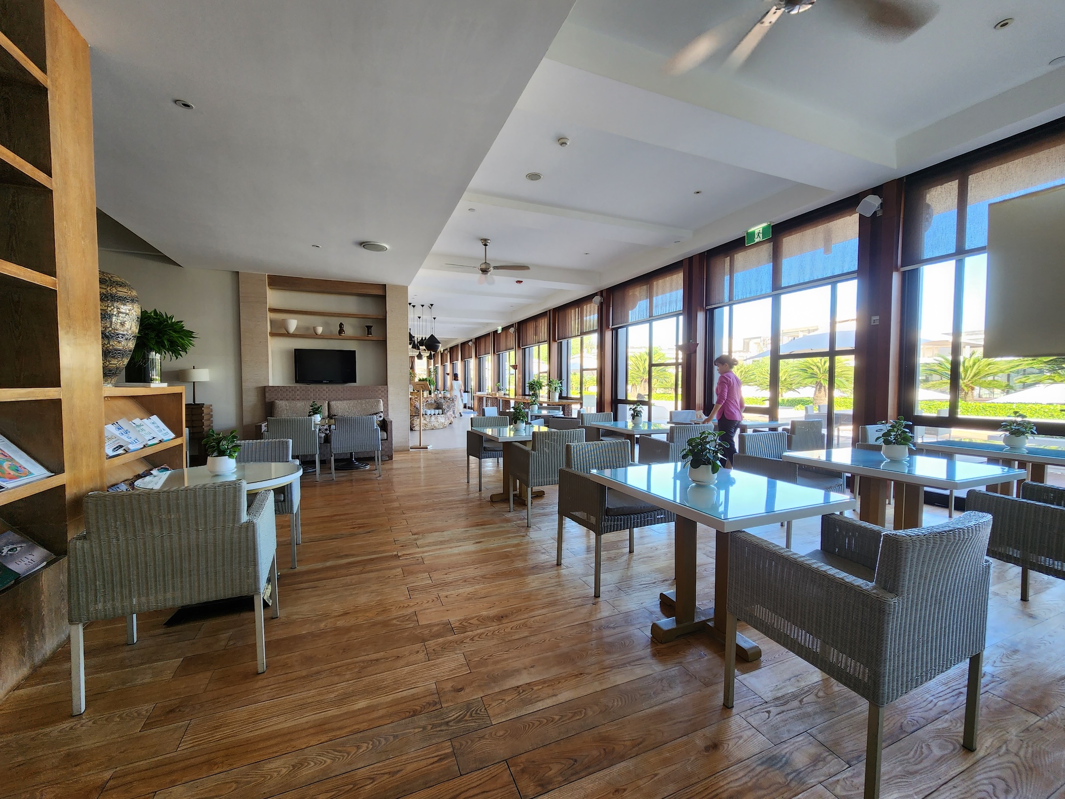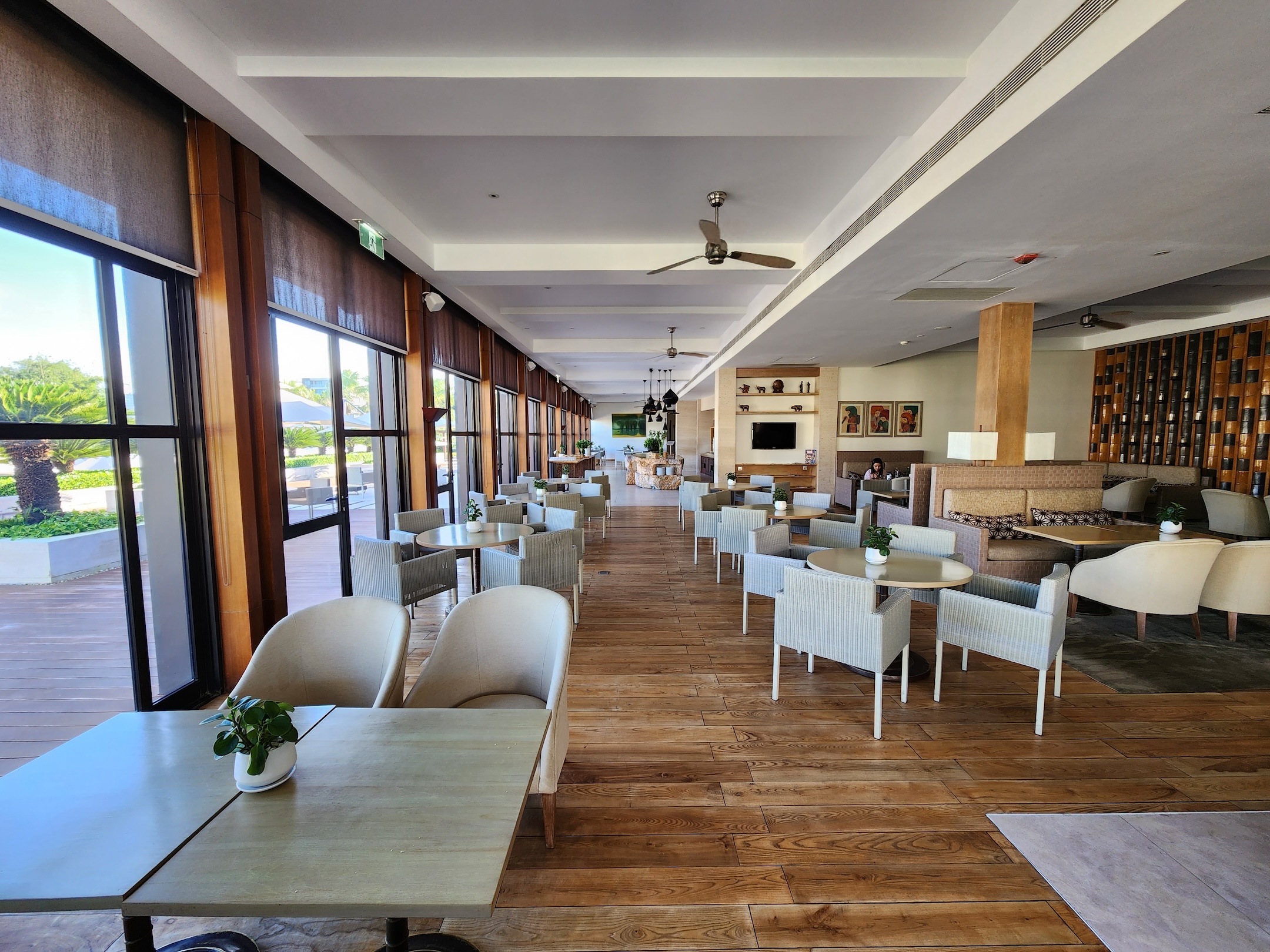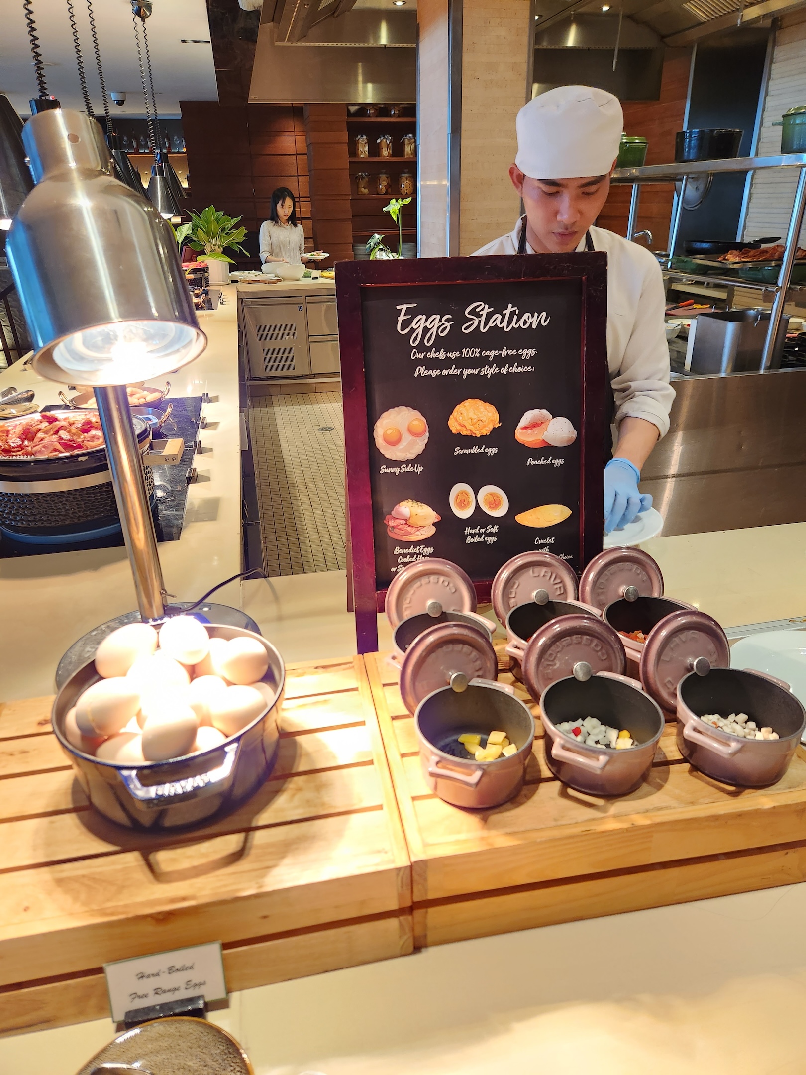 持有「環球客」會籍的房客,其中一個入住的福利,就是可以在「嘉賓軒」(Regency Club) 享用免費早餐。峴港凱悅渡假村的嘉賓軒內,在早餐時段都會提供自助式的餐飲選擇,有許多熱食/冷盤/麵包/飲料等等的供應。除此之外,也有提供「現點現做」的餐飲,除了有西式的蛋類料理可以選擇之外,也可以選擇一些傳統的越式料理(例如越式河粉)喔!整體來說餐飲的品質還算是有中上的水準,而且一大早就可以品嘗到豐富的早餐,真心覺得很不錯!讀者們可以參考以下的照片,來看看餐點的選項。