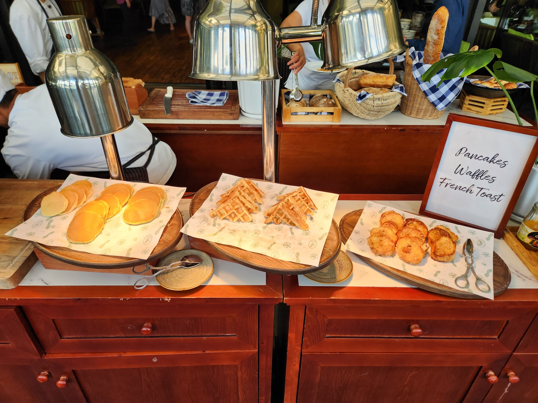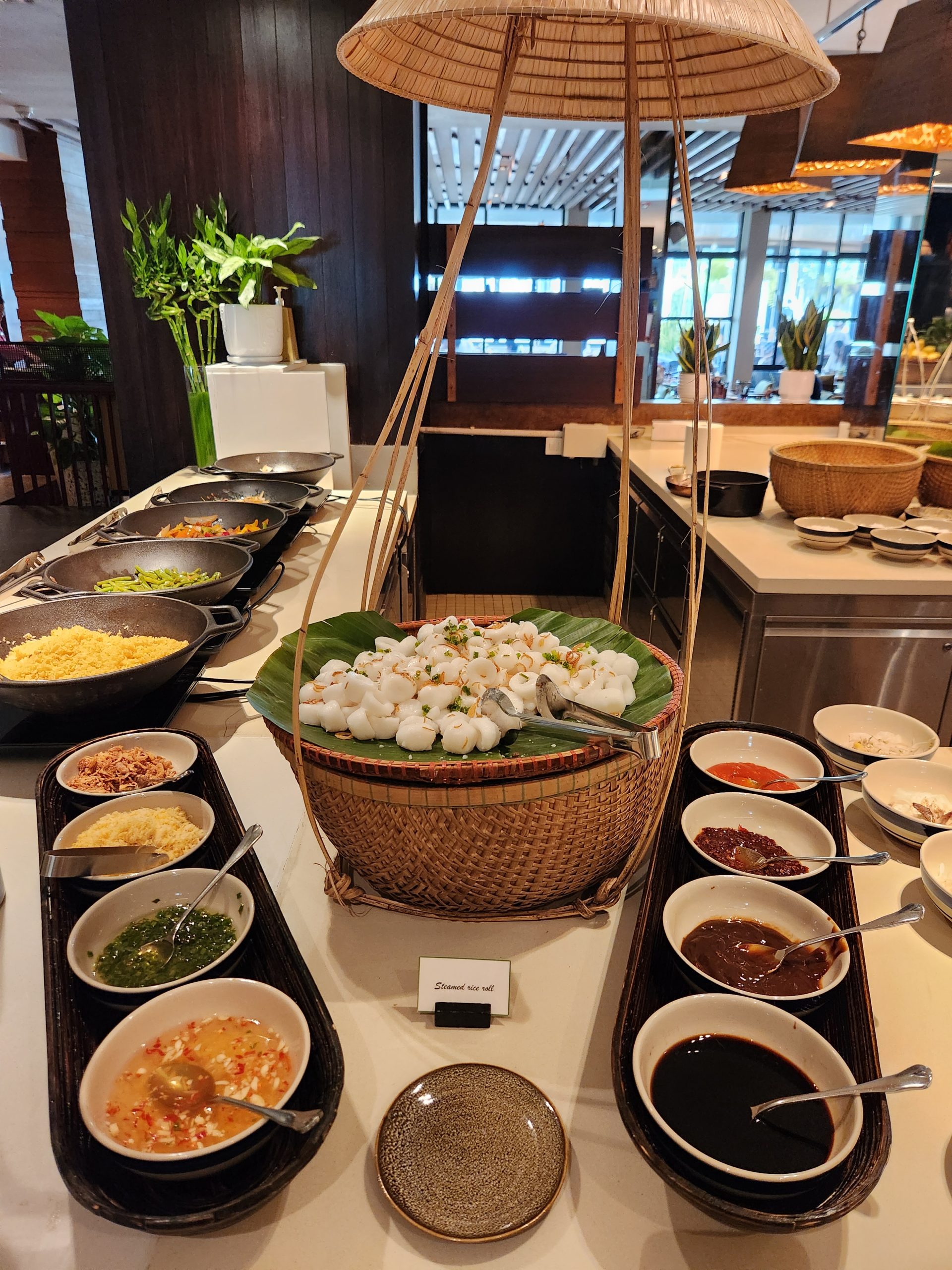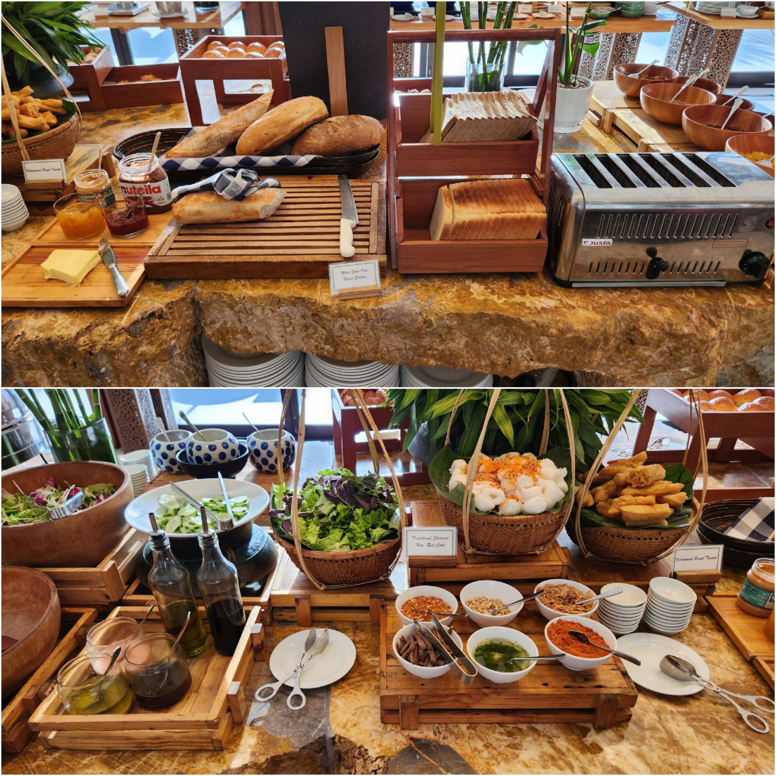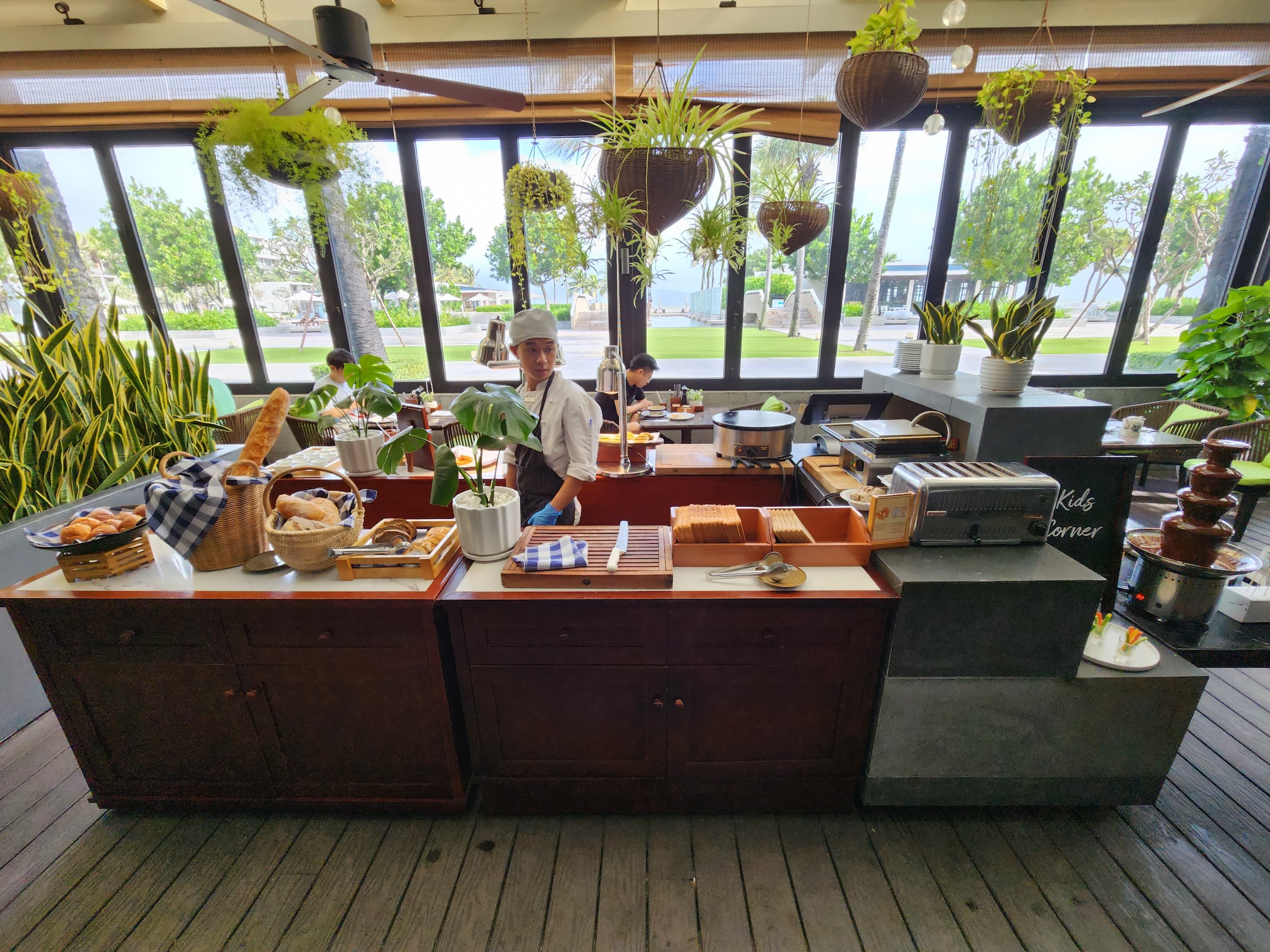 持有「環球客」會籍,加上入住高階套房的關係,因此除了可以在「嘉賓軒」免費享用早餐之外,我也有在餐廳享用早餐的資格。渡假村內有一間「Osteria al Mare」餐廳,早餐都在這裡供應,餐點的選擇果然比「嘉賓軒」內多很多,不過裡面用餐的房客也不少。這裡有非常多的餐點可以挑選,除了有傳統的越式餐點之外,還有一些中式與西式,甚至是韓式的餐點可以取用,真的相當豐富。就讓我透過以下的照片,來讓讀者們了解一下餐點選項的豐富與多元的程度吧!