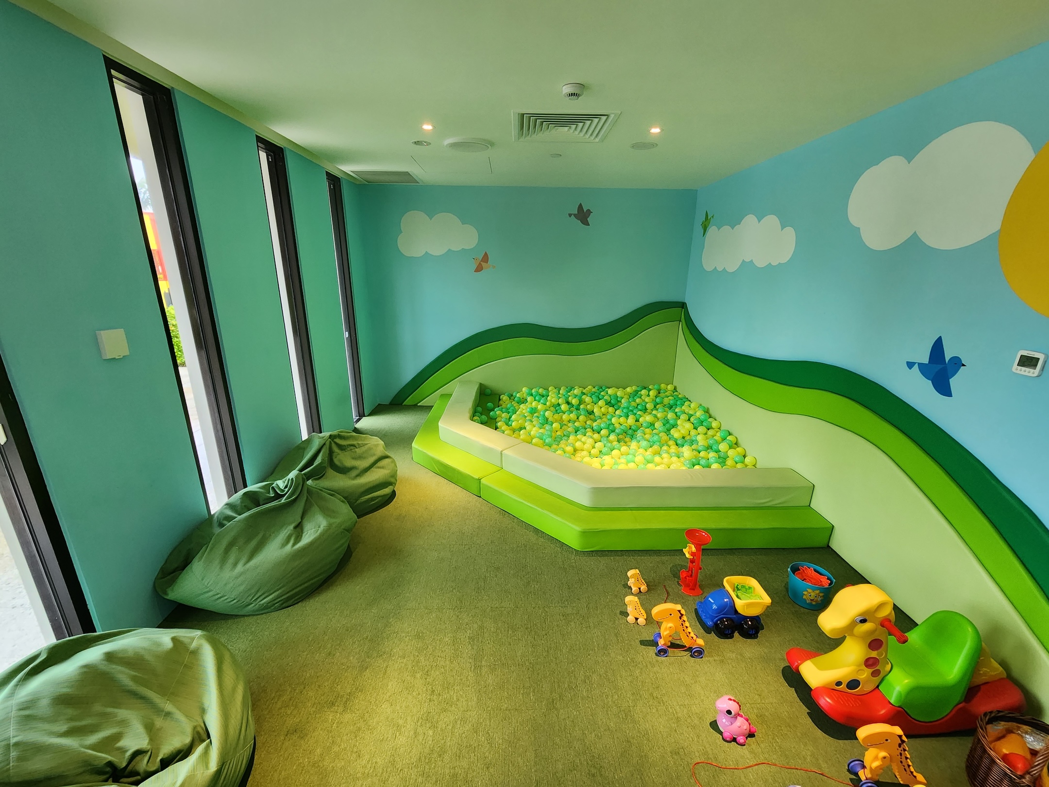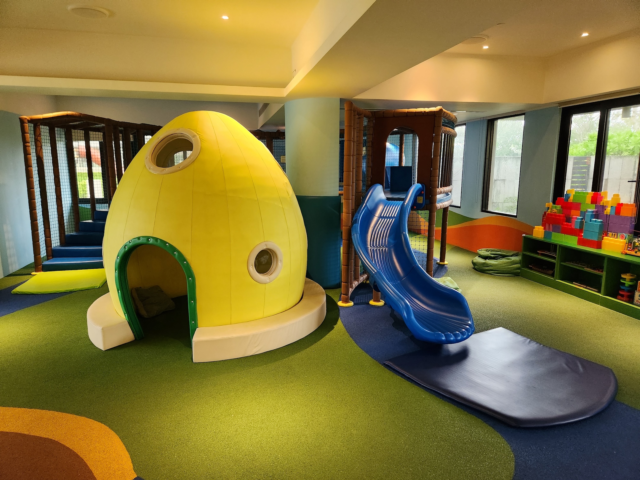 一個渡假村如果不是「成人」專用的話,若是有一個可以讓小朋友放電的地方,那絕對是大大的加分!而這裡剛好就有設置「凱悅趣悅營」的室內空間,以及戶外的兒童遊戲區,可說是室內與室外的設施都具備!拍照記錄的當天,因為下雨的關係,所以戶外遊戲區看起來有點灰矇矇的,但是在「凱悅趣悅營」的室內空間,還是可以使用。能夠讓孩子們在這裡盡情的遊樂消耗體力,相信對於爸媽們來說,也能夠減輕一些帶小孩出門旅遊的壓力。